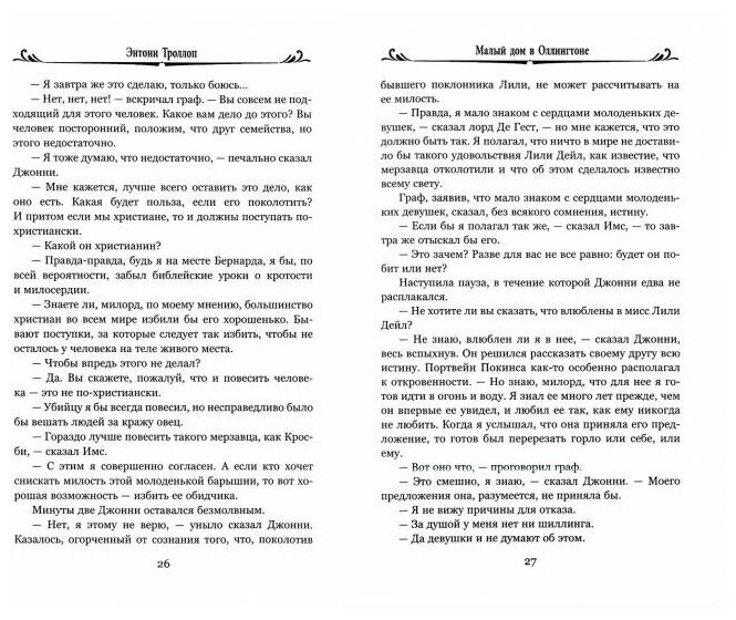 Окончание пятого романа Троллопа "Малый дом в Оллингтоне" из цикла "Барсетширские хроники", впервые полностью изданного на русском языке, в замечательной серии "100 великих романов", с яркими красочными обложками, четким шрифтом, белоснежными и гладкими страничками.