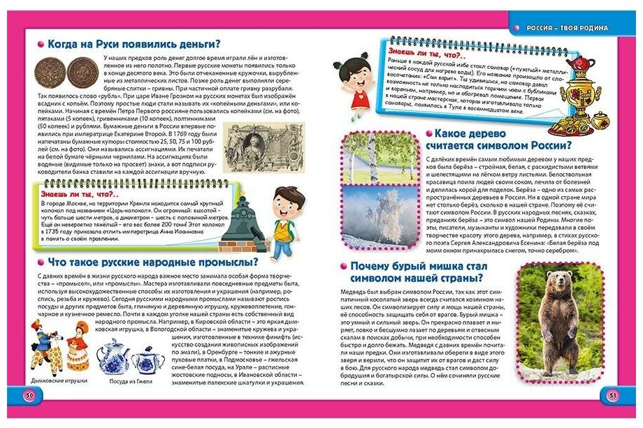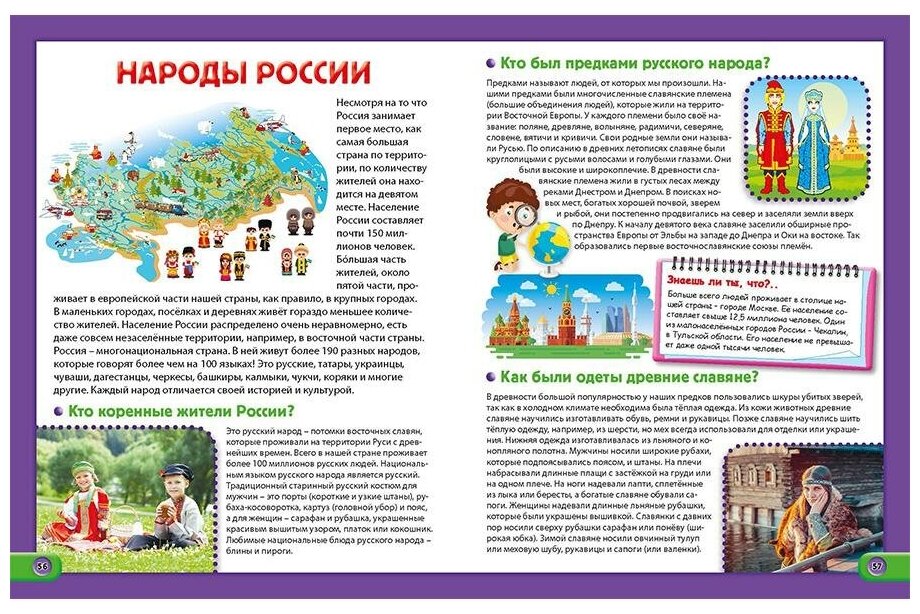 Мы поможем вам! В нашей энциклопедии с яркими картинками вы найдёте ответы на многие вопросы вашего любознательного ребёнка об окружающем мире, а также узнаете много нового о животных и птицах России, её истории, символах и традициях, познакомитесь с разными народами, населяющими нашу страну.