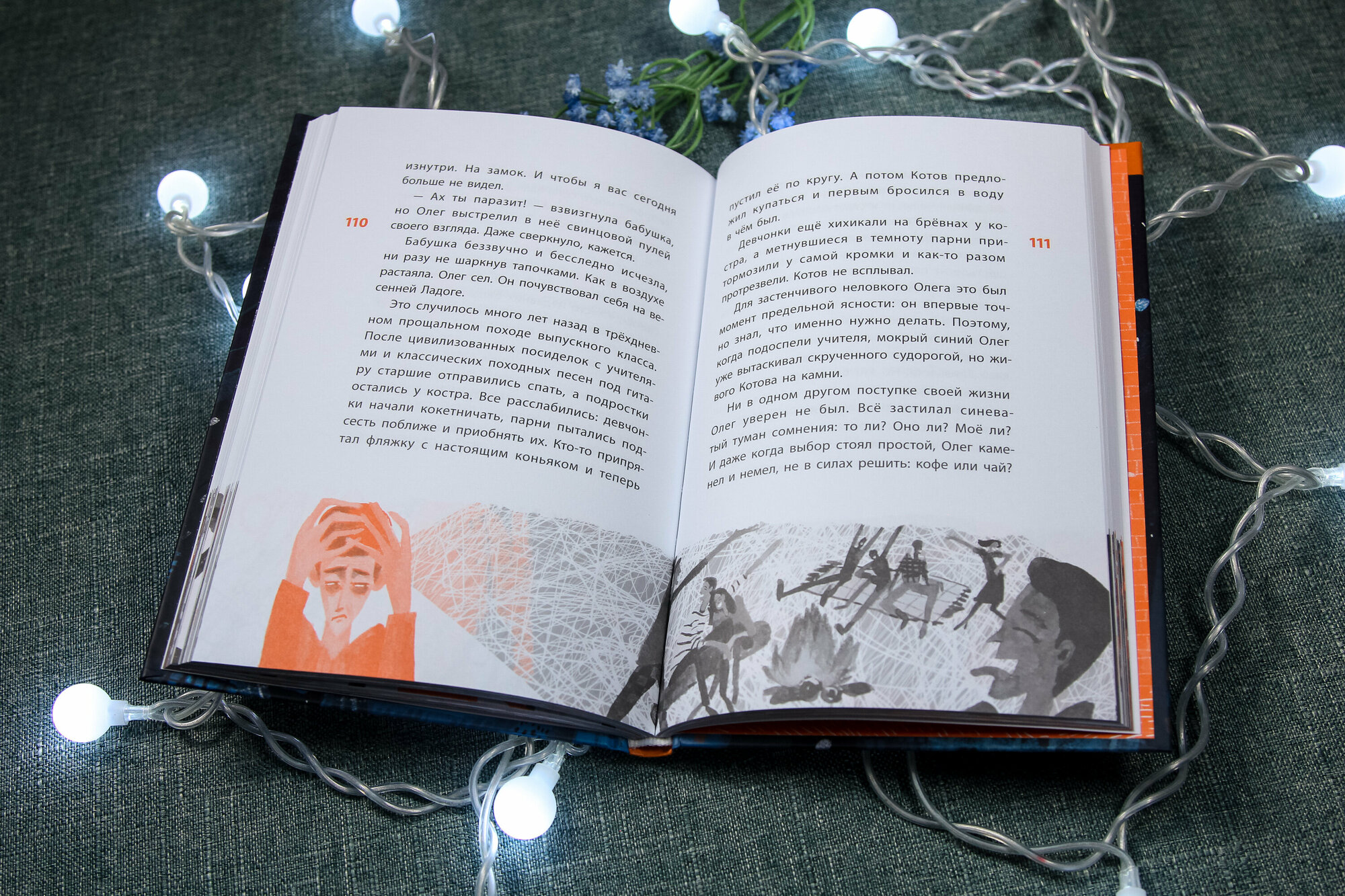 П. С. Оформление на высшем уровне! Книгу очень приятно держать и читать. На каждом развороте очень меткие, эмоциональные иллюстрации. Фарзац, обложка - тоже чудесные, ярко передают настроение. Иллюстратору тоже комплименты!