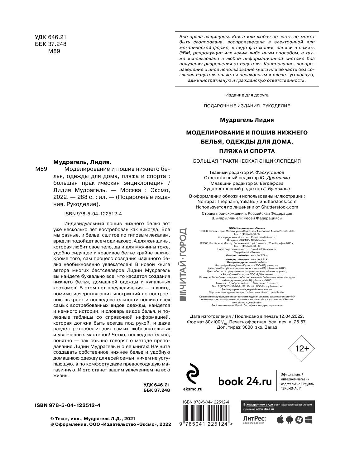 Сервис сравнения цен СкидкаГИД предлагает сравнить цены на товар «Книга: Моделирование и пошив нижнего белья одежды для дома пляжа и спорта. Большая практическая энциклопедия (Мудрагель Лидия Дмитриевна); ООО "Издательство "Эксмо", 2021»
