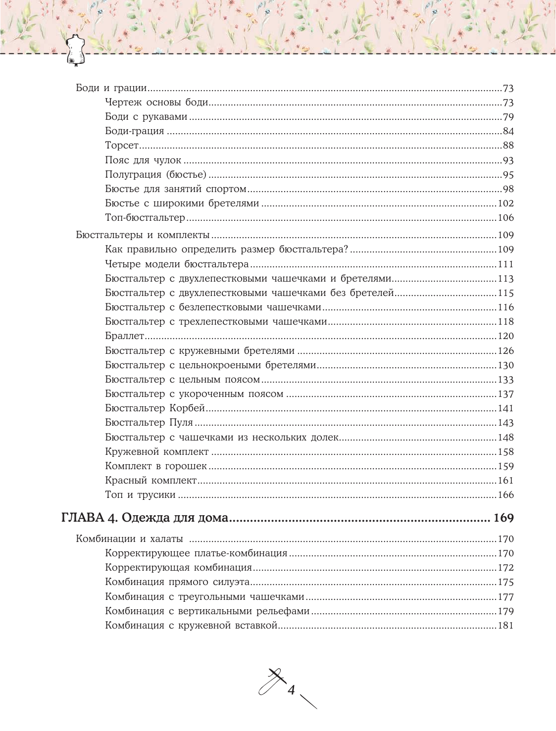 Для особо увлеченных в книге есть интереснейшая глава, посвященная ретро-белью ХIX века, способов создания которого не найти больше нигде. Введение в основы колористики научит создавать наиболее эффектные цветовые комбинации. А еще — огромное количество эксклюзивной информации о пошиве даже редких в наше время предметов нижнего белья, таких как боди, грации, бюстье, торсеты, подвязки, корсеты.