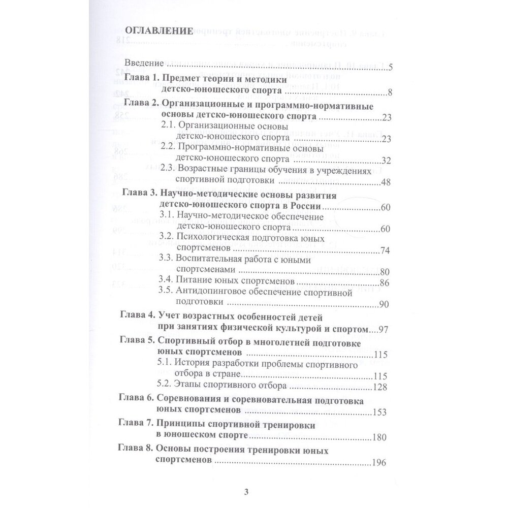 Раскрываются содержание, организационные формы подготовки юных спортсменов, общие закономерности процесса специализированных занятий, вопросы оптимального планирования и построения тренировки детей, подростков, юношей и девушек в годичном цикле и многолетней подготовки.