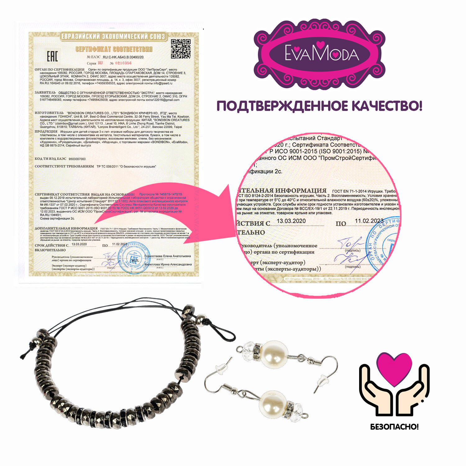 - Eva Moda Жемчужная Роскошь набор для творчества Bondibon Красивый браслетик и ожерелье своими руками
