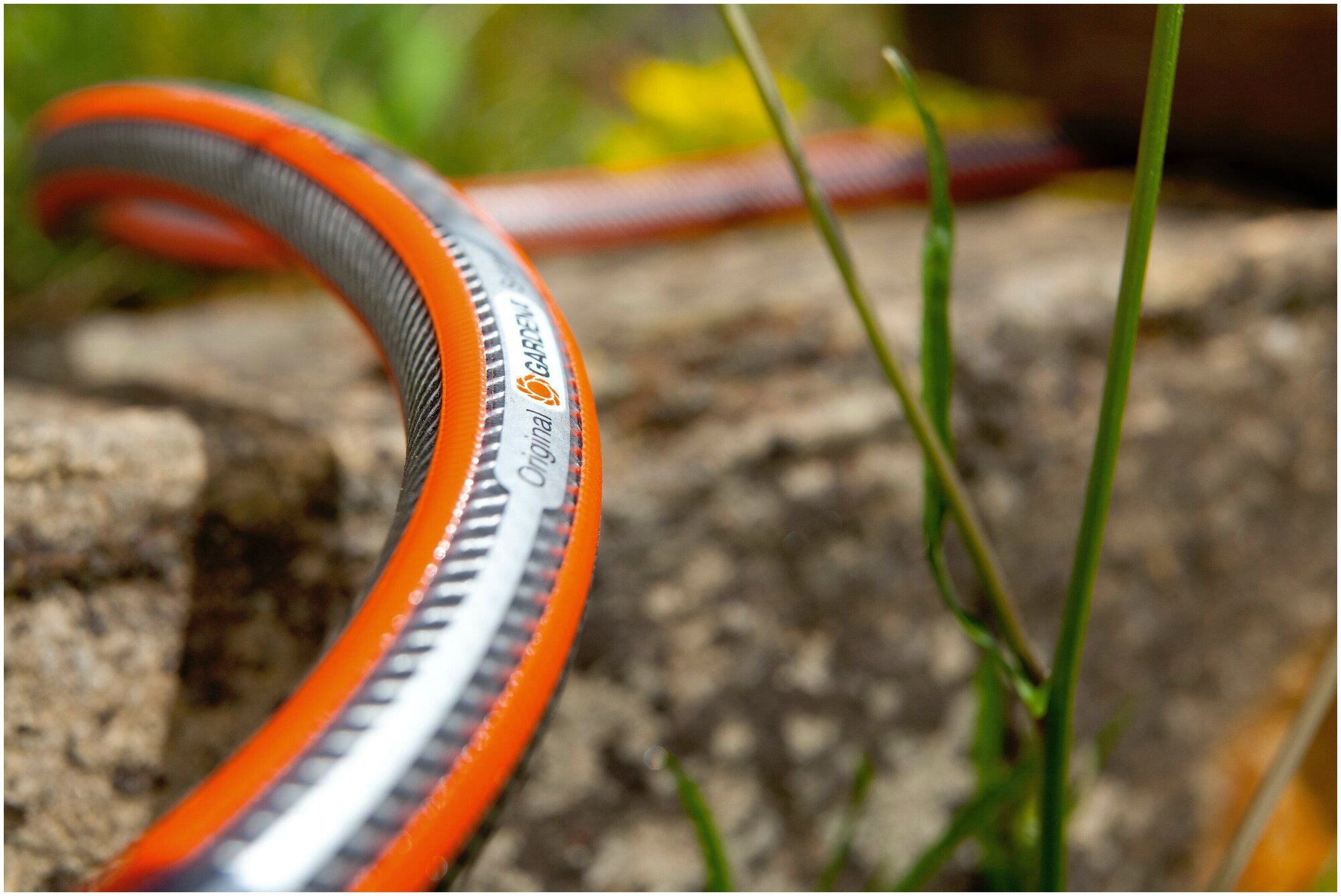 Шланг GARDENA Premium SuperFLEX с профилем Power Grip гарантирует идеальное соединение между шлангом и соединителем шланга. Благодаря новой технологии эта блокировка подобна зажиму зубчатыми колёсами. Профиль Power Grip делает возможным то, чего долго ждали многие садовые владельцы: надежное соединение с идеальным удерживающим усилием. Положительный побочный эффект от такого профиля: шланг легче сматывать и он хорошо скользит. Благодаря высокой плотности, высококачественной спиральной текстильной сетке с двумя спиралями в противоположных направлениях шланг особенно стойкий к давлению и сохраняет свою форму, но в тоже время это наиболее гибкий среди всех шлангов GARDENA. Это достигнуто благодаря увеличенной плотности спиралей, которые делают шланг более гибким и простым в обращении. Он не связывает себя в узлах и не перекручивается. Это наилучшие предпосылки для удобного и гибкого использования в вашем саду. Если необходимо, то шланг может планомерно дополнятся системой фитингов Original GARDENA и соединительными устройствами. В шланге отсутсвуют фталаты и тяжелые металлы, а также он невосприимчив к УФ-излучению. Толстые стенки делают шланг особенно прочным и долговечным. Давление разрыва: 35 Бар.