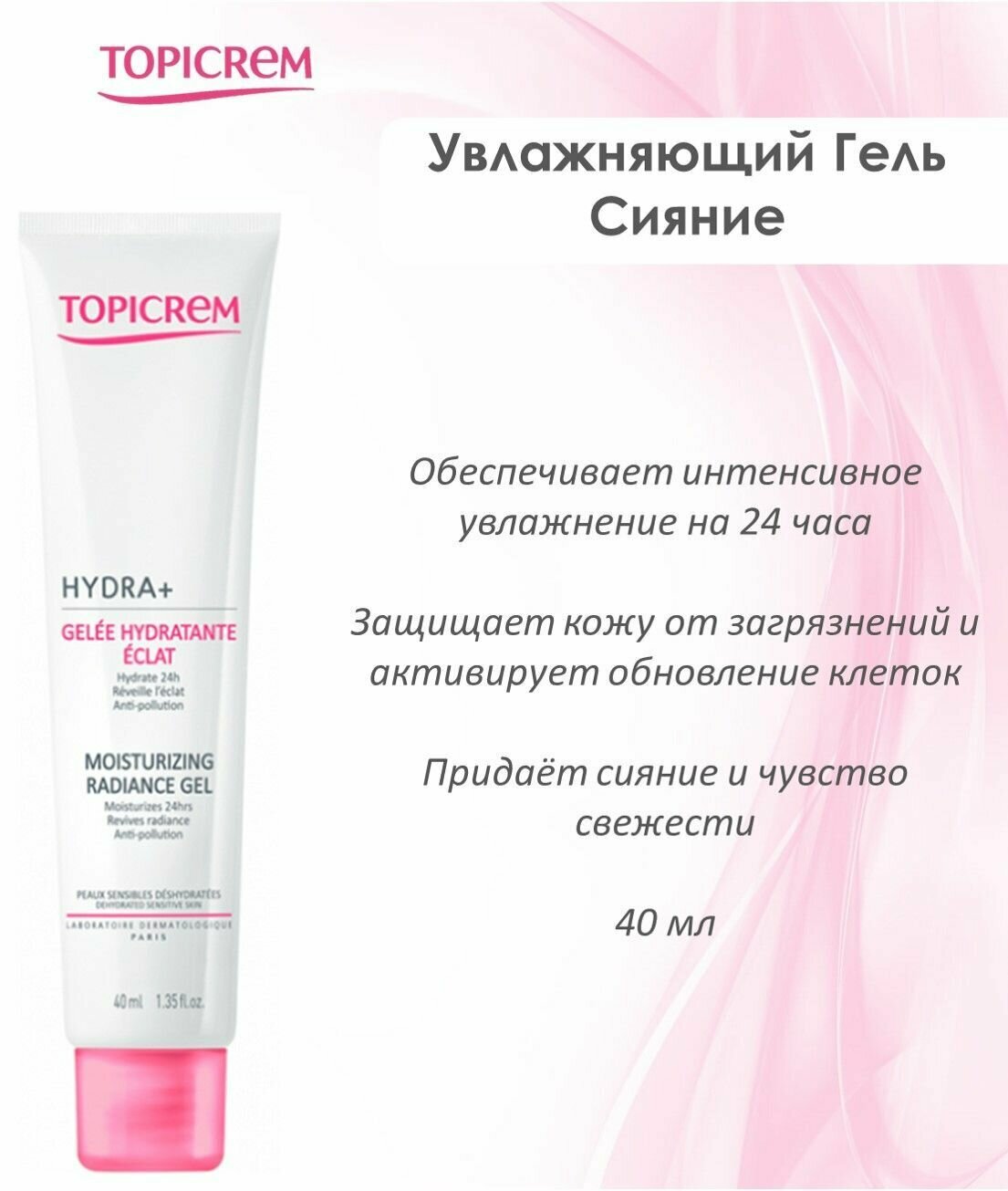 Topicrem Увлажняющий гель-сияние 40 мл (Topicrem ) HYDRA +