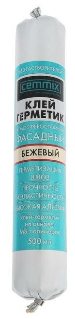 CEMMIX Фасадный герметик - постоянно эластичный фасадный клей-герметик на основе MS полимеров для склеивания и герметизации швов плит из натурального камня (мрамор, гранит и т.п.), крепление теплоизоляционных плит, а также для соединения элементов в конструкциях, подвергающихся вибрациям. Возможно применение при отрицательных температурах, клеит также влажные материалы.