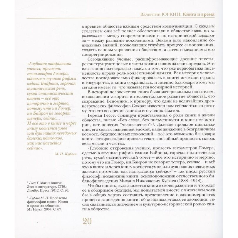 Беззаветно преданный книге, работающий в сфере книгоиздания уже несколько десятков лет, генеральный директор АО «Молодая гвардия» Валентин Юркин поставил перед собой сложную, амбициозную задачу: проследив историю возникновения, становления и развития мировой и отечественной книги, разобраться в самом феномене книжной культуры, чтения.