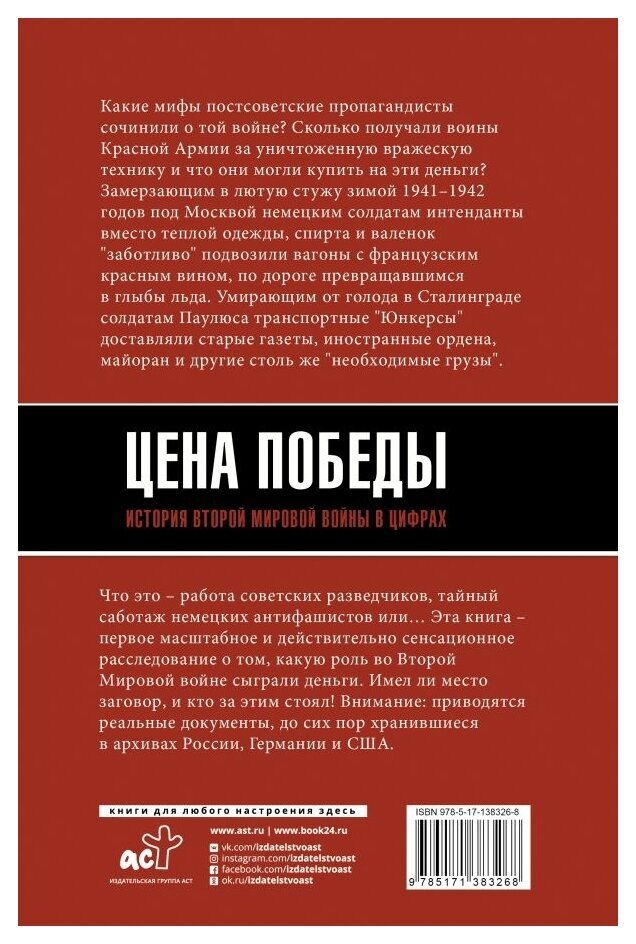 Сервис сравнения цен СкидкаГИД предлагает сравнить цены на товар «Книга: Цена Победы. История Второй мировой войны в цифрах (Максим Кустов); Издательство АСТ, 2021»