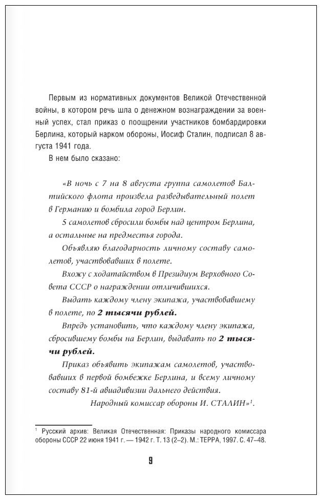 Довольно любопытная книга - дается информация о размерах оплаты за уничтоженную вражескую технику во время Великой Отечественной Войны. Причем есть сведения и о том, как часто эти деньги реально выплачивались. Автор вообще широко подошел к вопросу : приведена информация о денежных довольствиях и зарплатах в военное время, о ценах, деньгах на оккупированных территориях, трофеях и многое другое. Мне, например, было интересно узнать, почему у наших летчиков-асов в разы меньше сбитых самолетов, чем у немецких. Причем при всей \"нехудожественности\" читается книга довольно легко.
