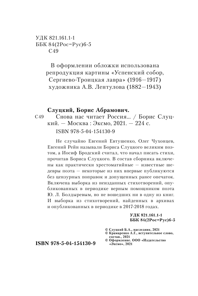 Снова нас читает Россия... (Слуцкий Борис Абрамович); ООО "Издательство "Эксмо", 2021