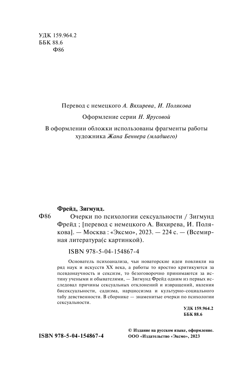 Очерки по психологии сексуальности (Фрейд Зигмунд); ООО "Издательство "Эксмо", 2021