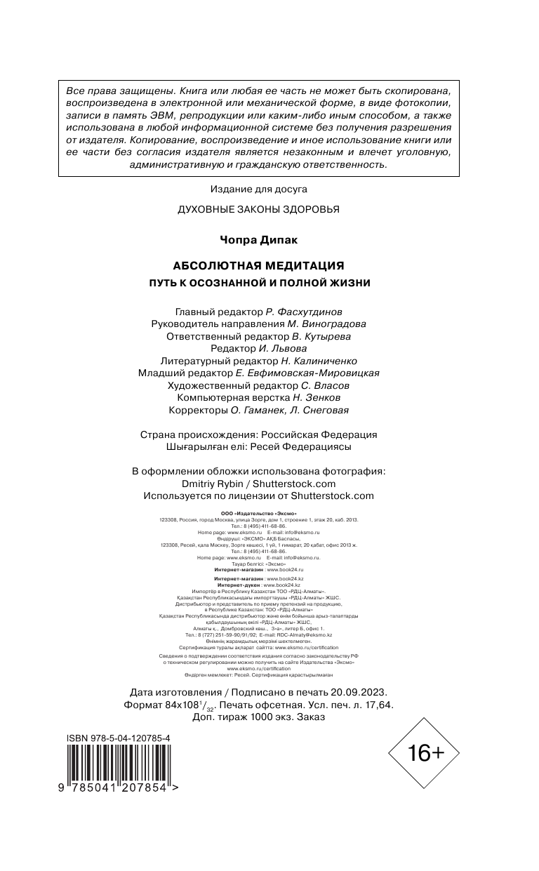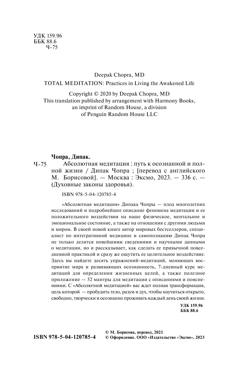 Абсолютная медитация. Путь к осознанной и полной жизни (Чопра Дипак); ООО "Издательство "Эксмо", 2021