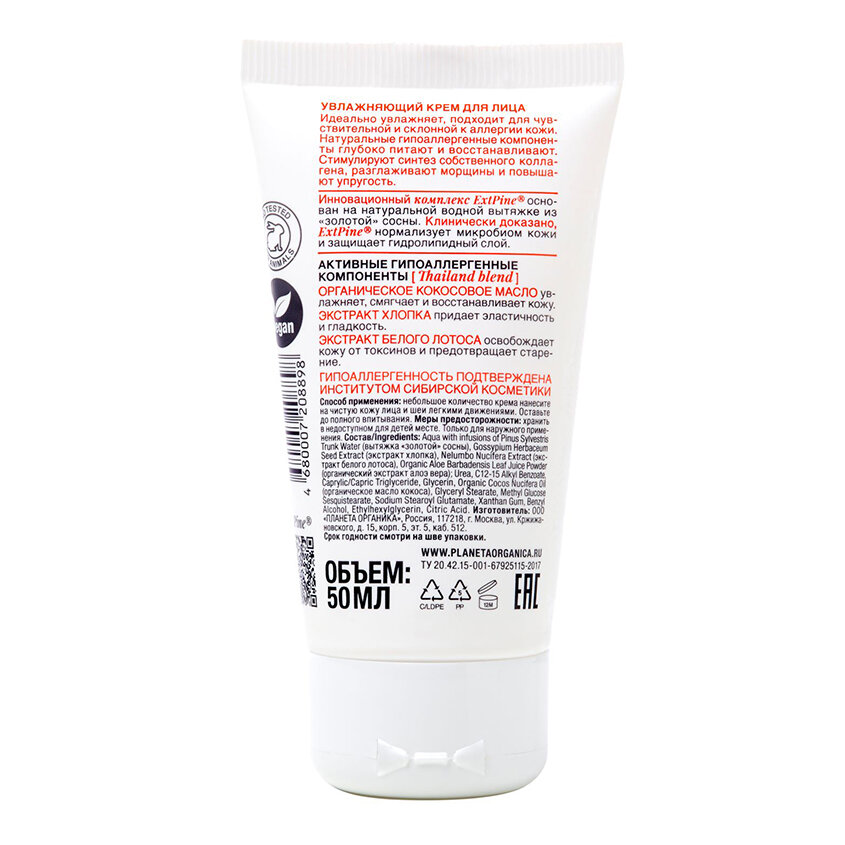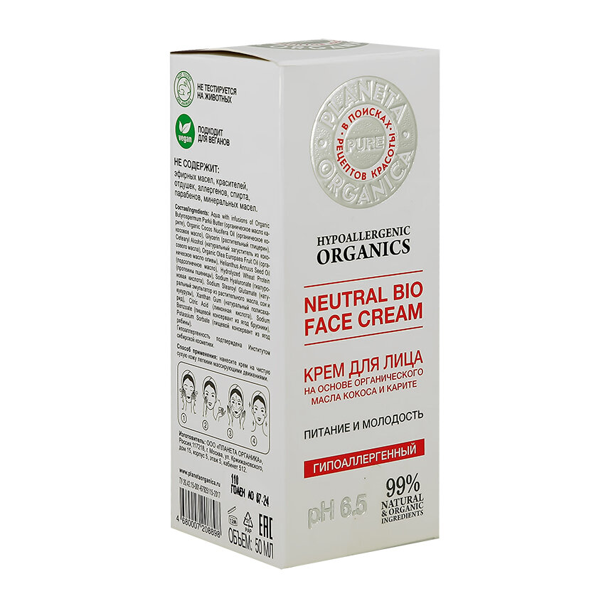 Крем для лица гипоаллергенный Pure Planeta Organica/Планета Органика 50мл Планета органика ООО (1091859)