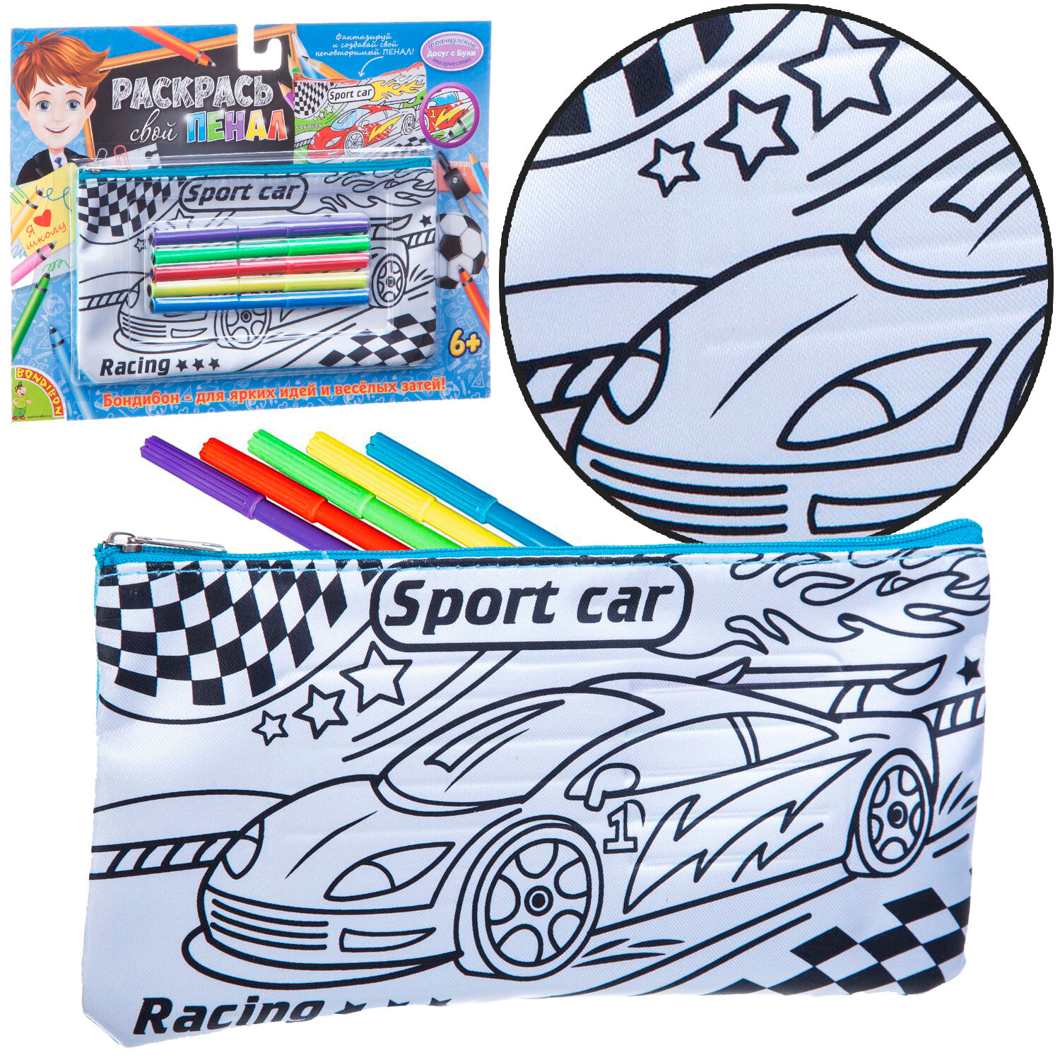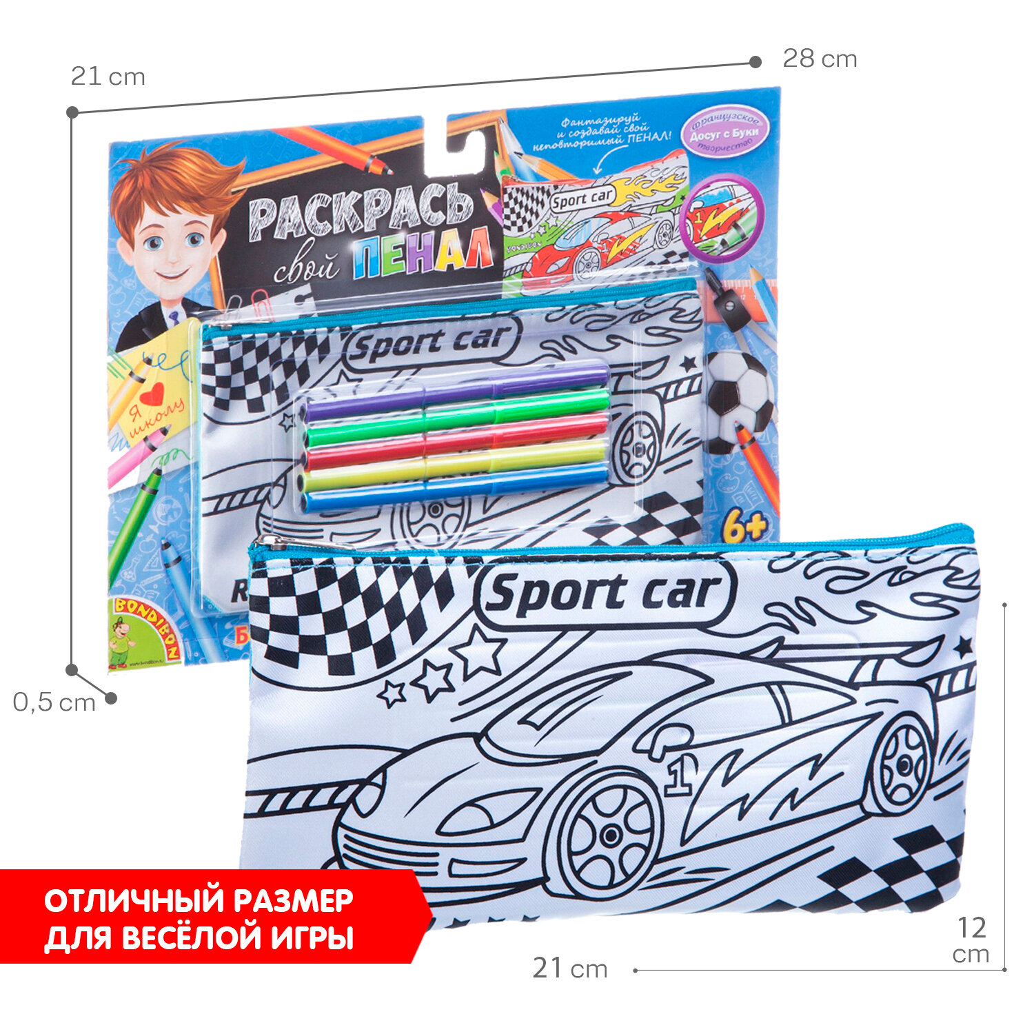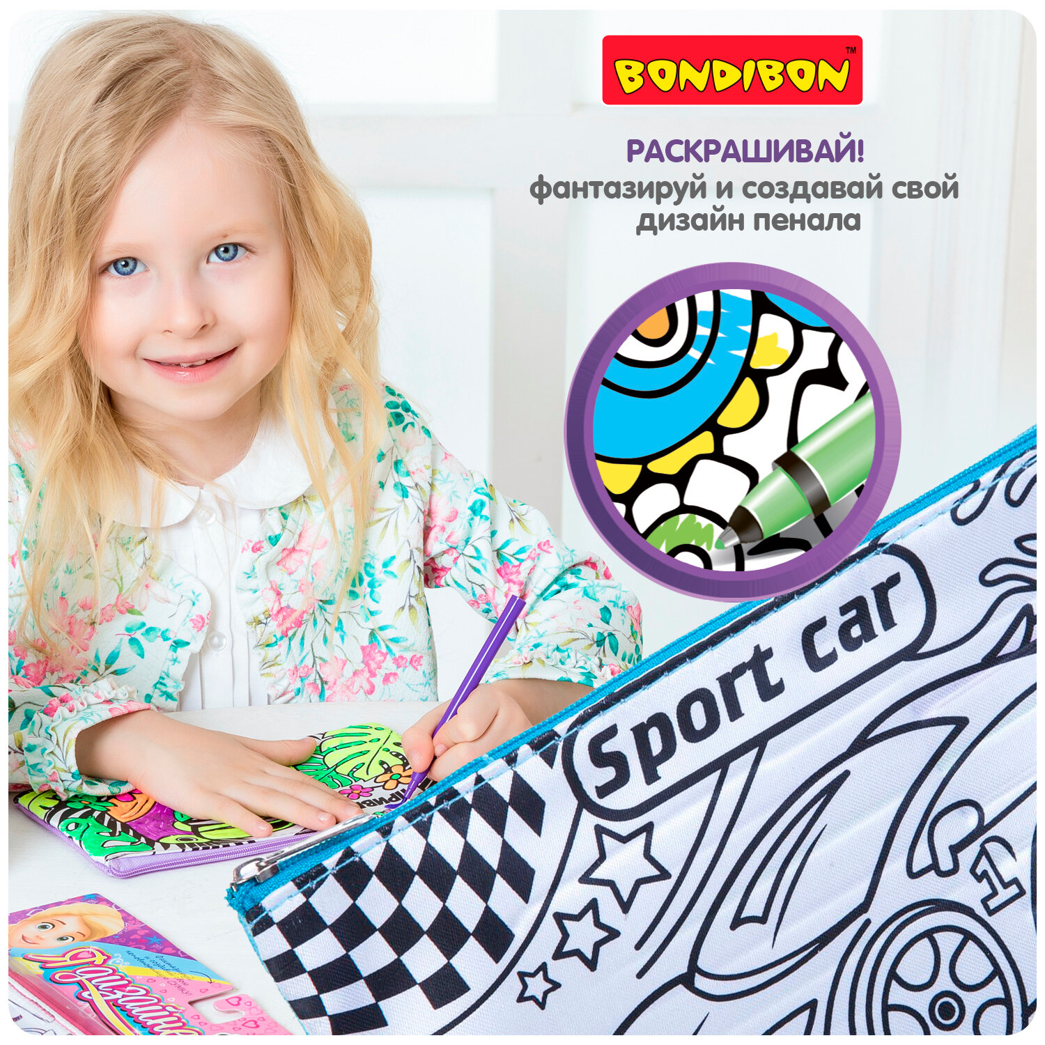 Мягкий и удобный пенал для раскрашивания ТМ Bondibon позволит ребенку создать свой неповторимый дизайн. Достаточно взять цветные маркеры, входящие в набор, и раскрасить его на свой вкус. Кроме того, пенал вместит в себя необходимые принадлежности и займет небольшое место в сумке или портфеле ребенка.
