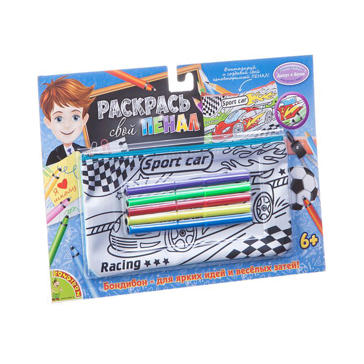 Набор для творчества Вondibon Пенал для раскрашивания 21*12см голубой Bondibon