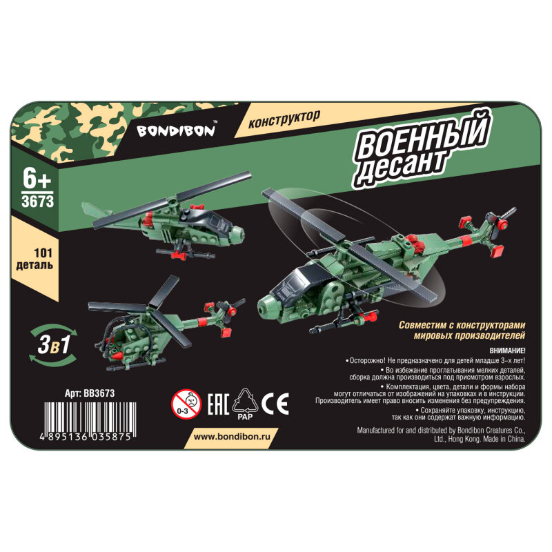 Сервис сравнения цен СкидкаГИД предлагает сравнить цены на товар «Конструктор Bondibon Военный десант Вертолет»