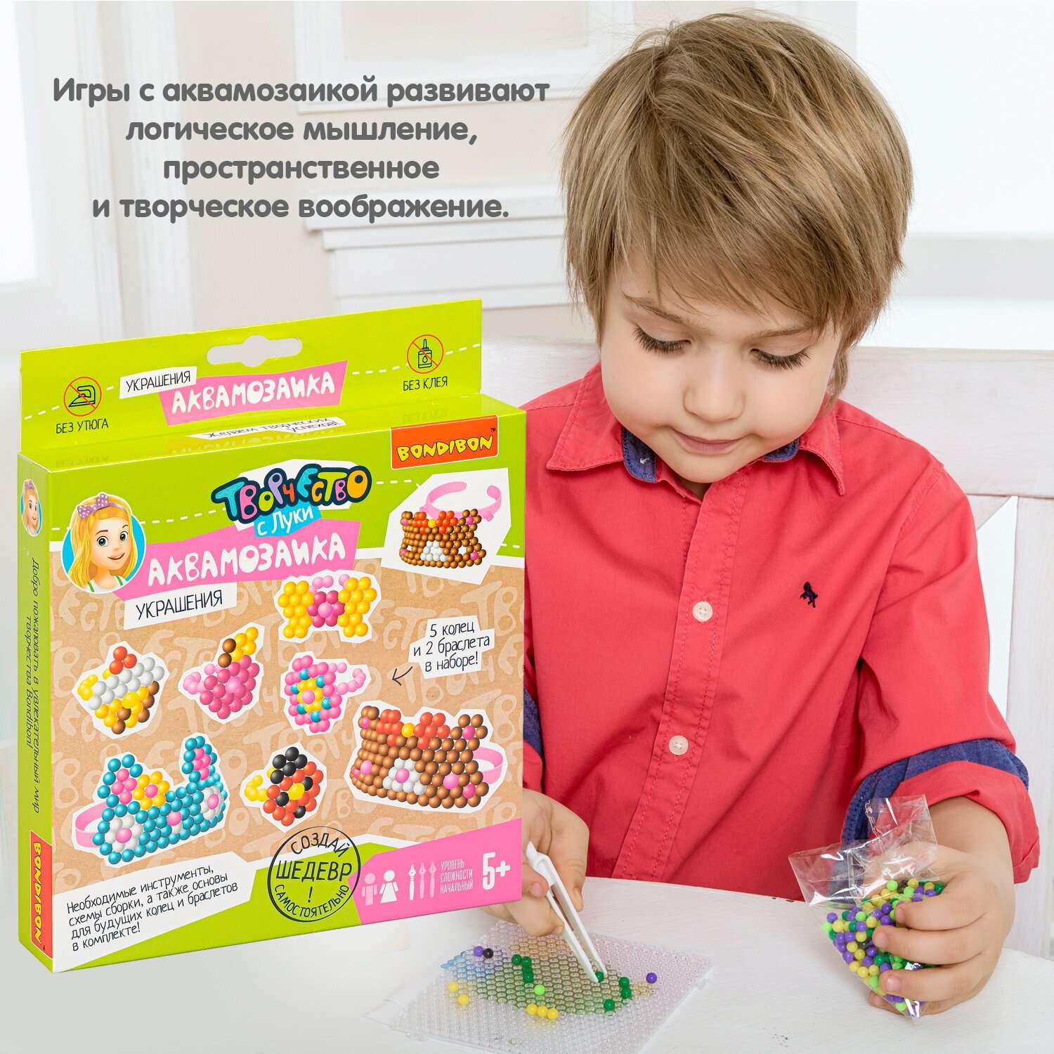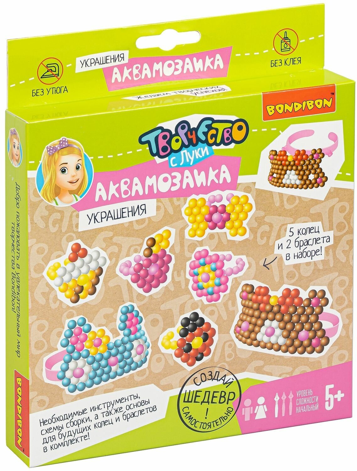 Аккуратно наденьте полученные фигурки на основы для колец и браслетов - комплект из украшений готов! Бусины и основы для 5 колец и 2 браслетов в наборе!