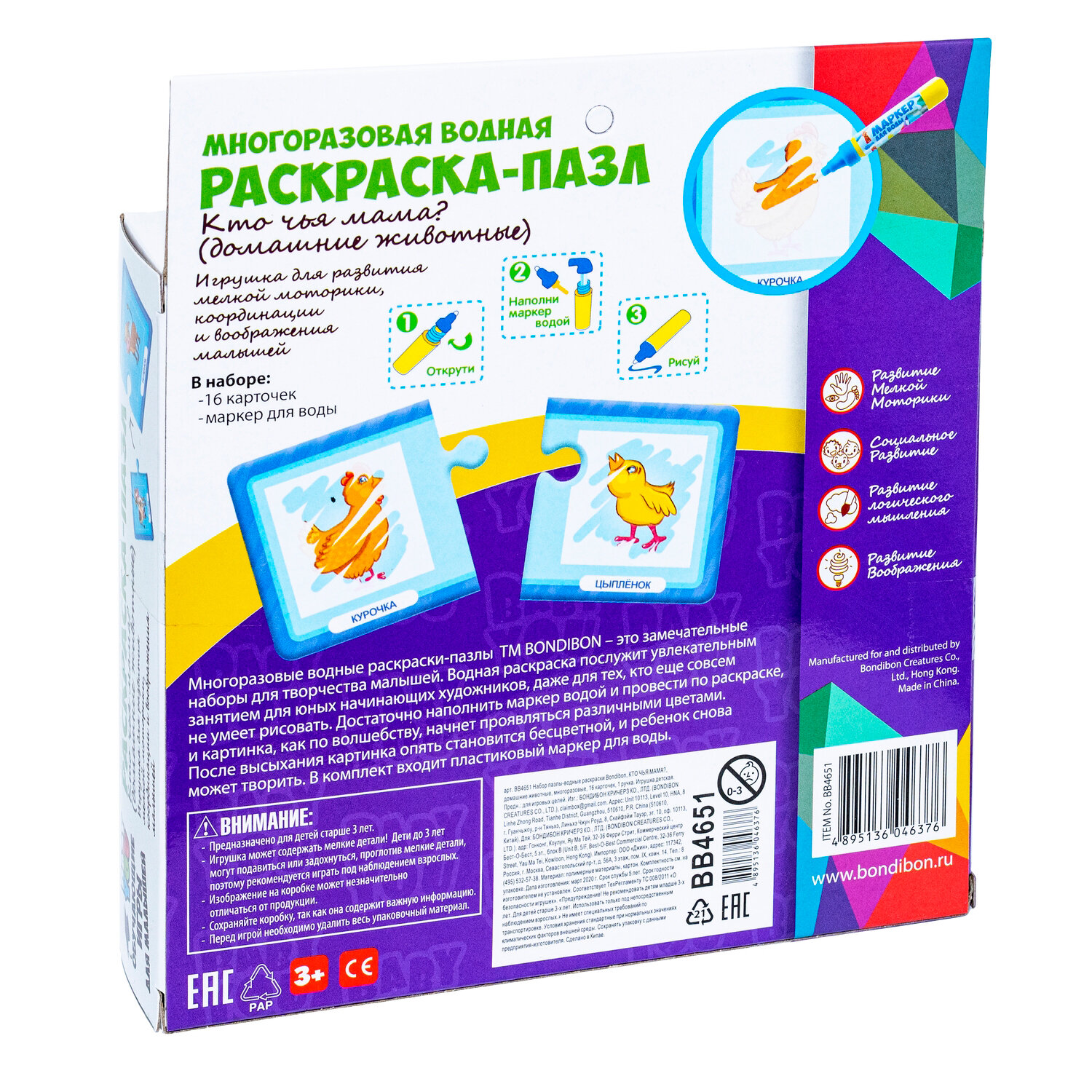 Набор для творчества Bondibon Многоразовая водная раскраска-пазл