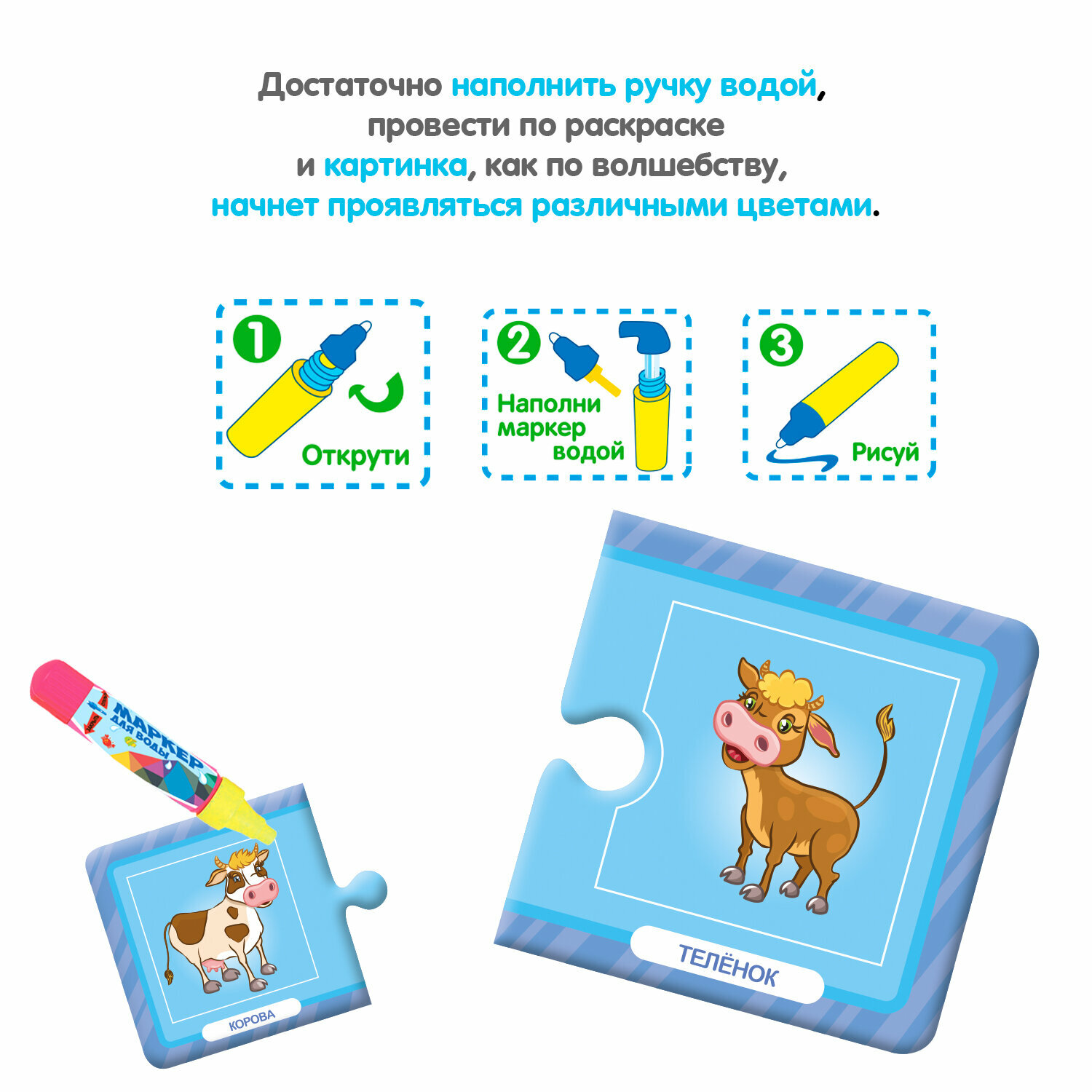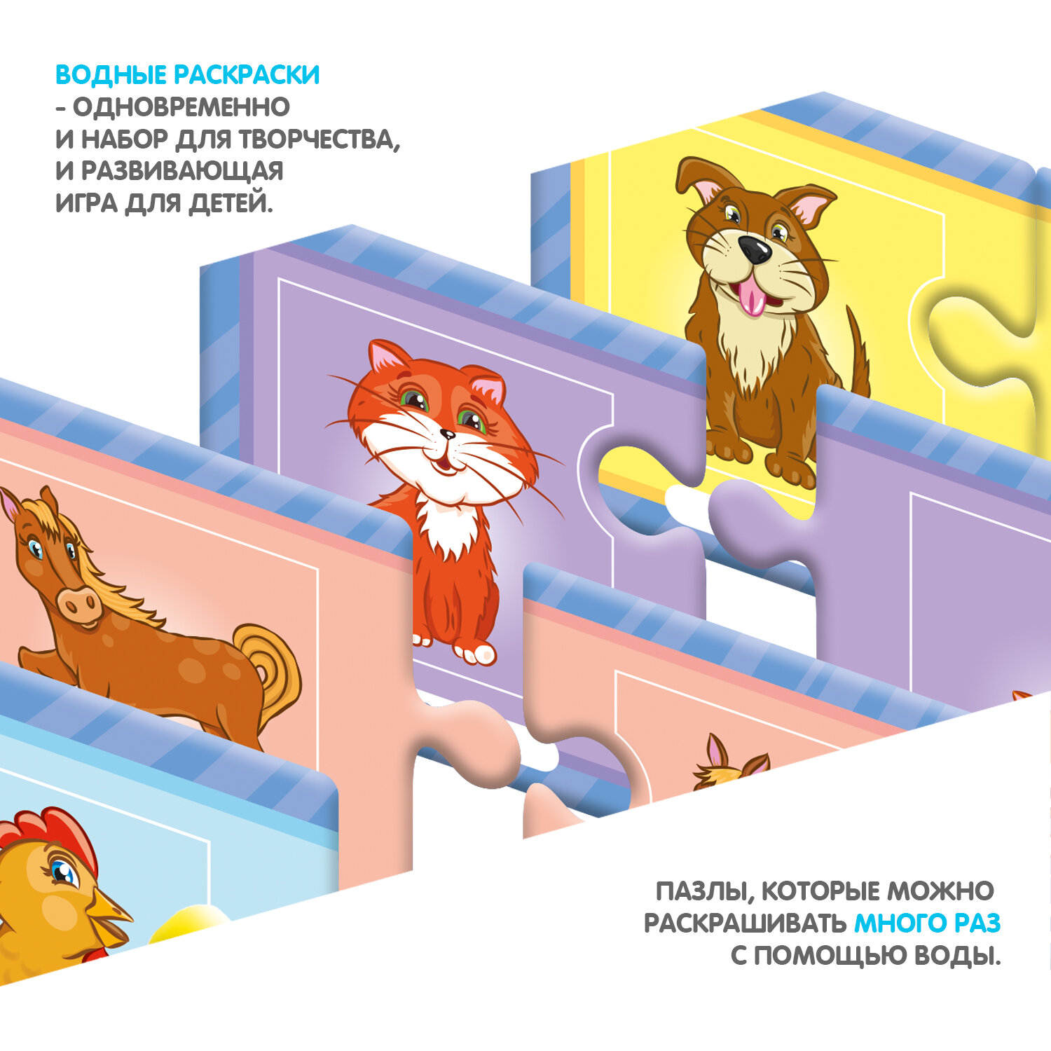 Многоразовые водные раскраски-пазлы - это замечательные наборы для творчества малышей от 3 лет.