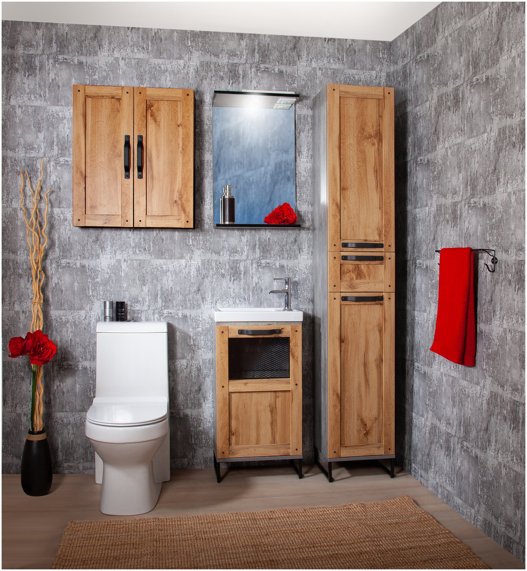 Зеркало Бриклаер Лофт 45 с полочкой выполнено в современном лофт стиле с металлическим каркасом корпуса и подсветкой. Зеркало подходит для использования в помещениях с повышенной влажностью и отлично впишется в интерьер ванной комнаты.