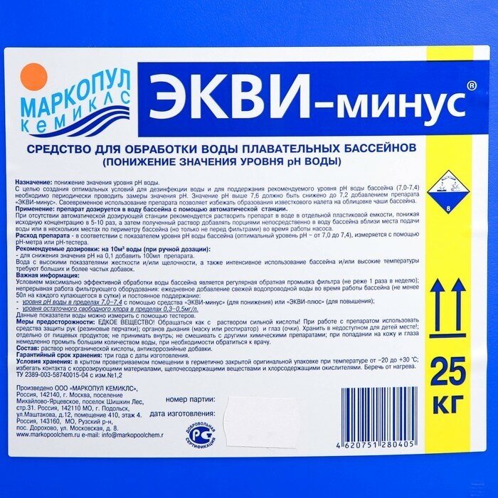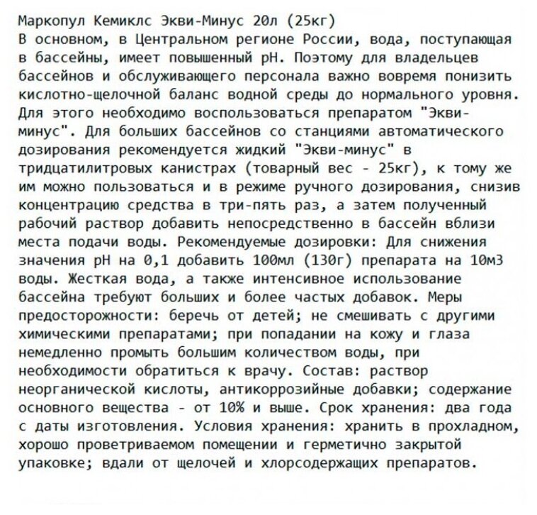 Сервис сравнения цен СкидкаГИД предлагает сравнить цены на товар «Маркопул Кемиклс ЭКВИ-минус Средство для обработки воды плавательных бассейнов (понижение значения уровня pH воды) 37 кг»