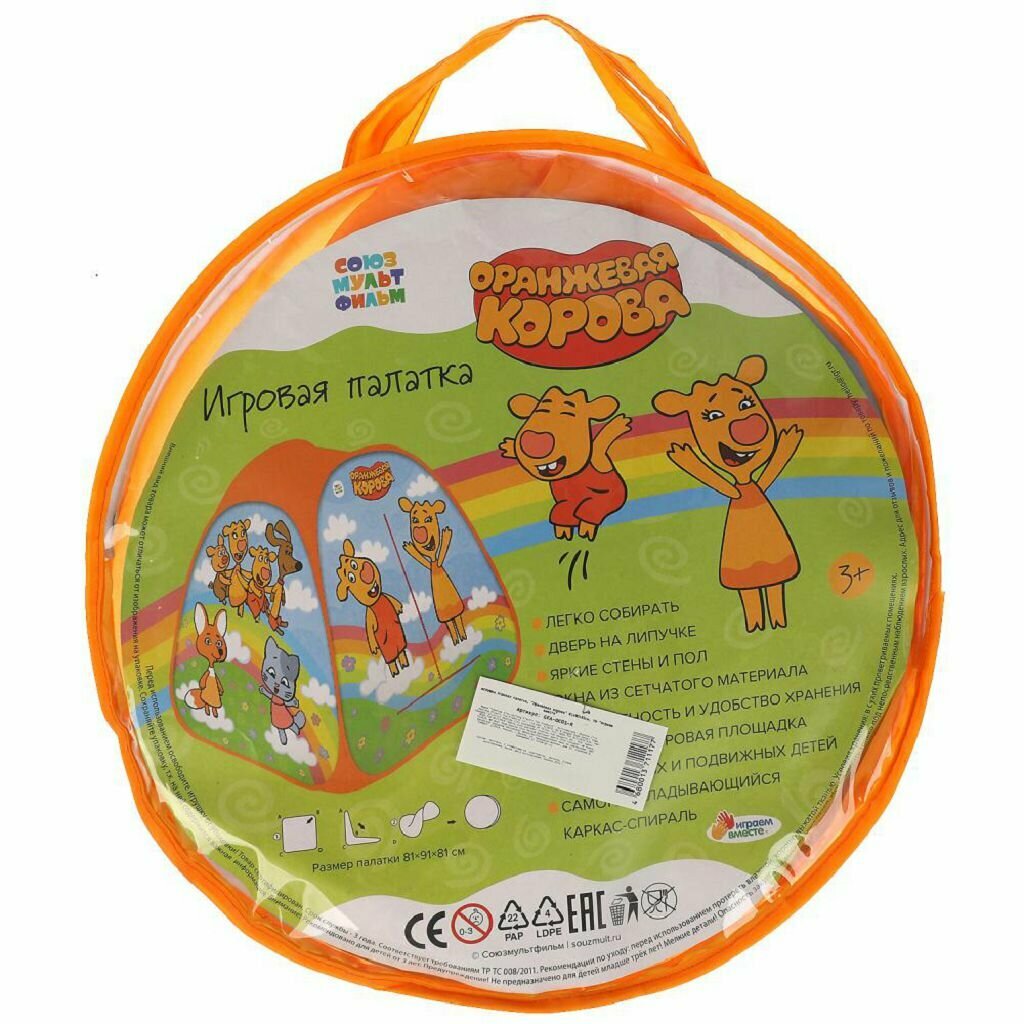 Детская игровая палатка «Оранжевая корова» ТМ «Играем вместе» непременно понравится маленьким поклонникам мультсериала про весёлое семейство коров и их друзей:
