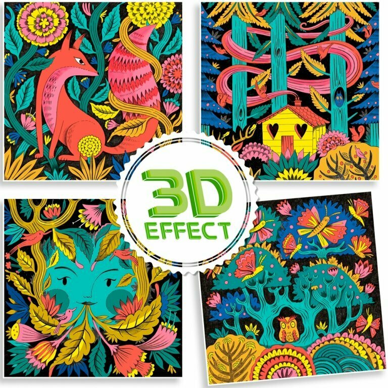 Захватывающий набор красок с 3D-очками для создания ярких и веселых 3D-изображений предлагает раскрасить картинки и наблюдать оптический обман!