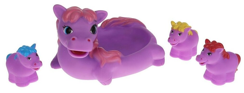 Эта яркая игрушка обязательно привлечёт внимание ребёнка и превратит купание в праздник. Малыш с удовольствием будет играть с милым пони-мамой и малышом, придумывая разнообразные сюжеты.