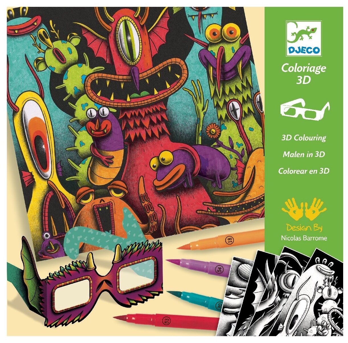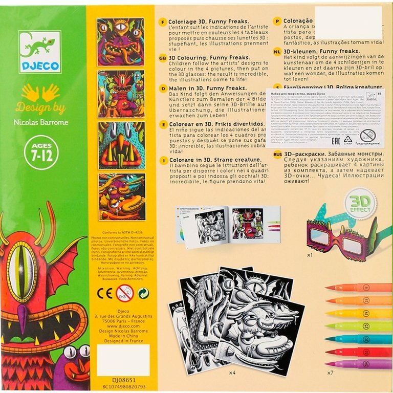 Захватывающий набор для раскрашивания с 3D-очками для создания красочных и веселых 3D-изображений позволит ребенку погрузиться в творческий процесс, развить креативность и усидчивость.
