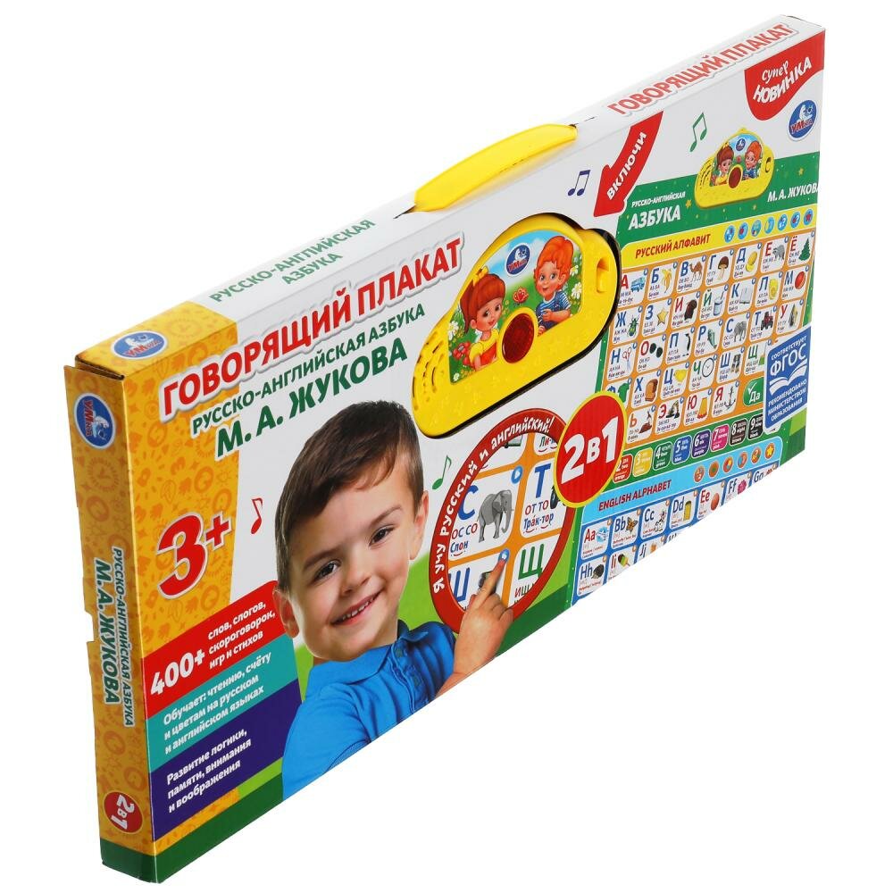 Двусторонний говорящий плакат 2 в 1 А. Жукова Русско-английская азбука ТМ УМка станет прекрасным обучающим подарком для маленького любознайки.