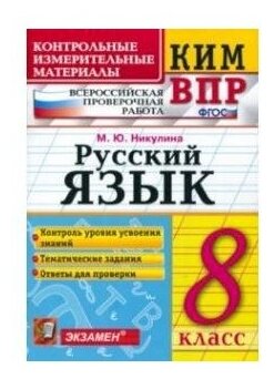 Русский язык 8 класс Контрольно-измерительные материалы Всероссийская проверочная работа (Никулина Марина Юрьевна); Экзамен, 2021
