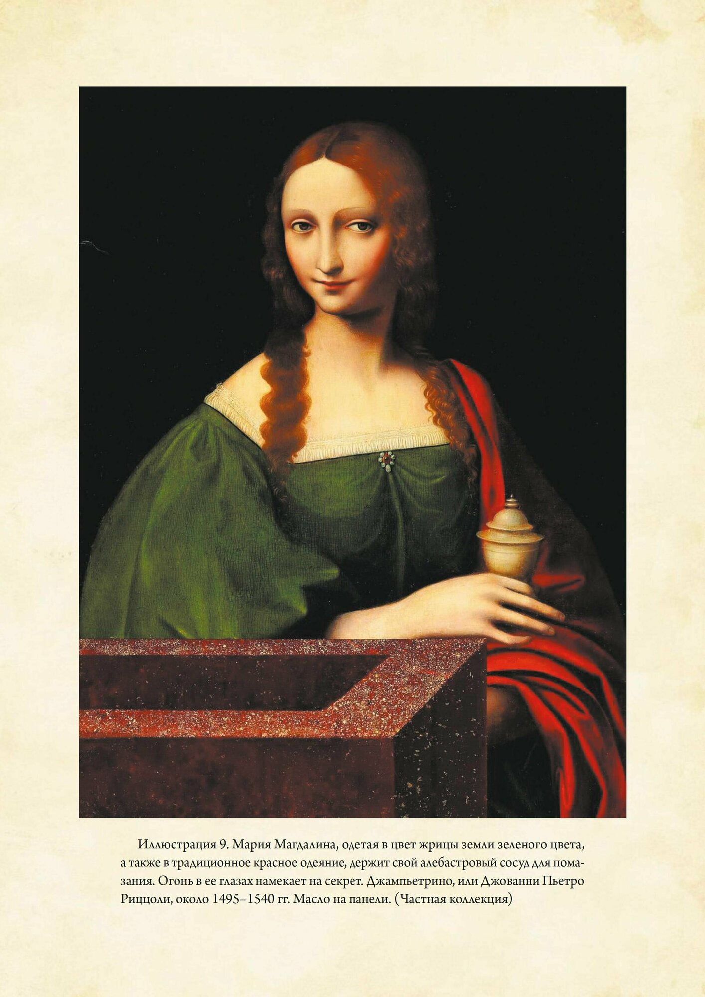 В книге очень много иллюстраций, помещены картины художников, изображающие эту святую. Мне больше всего понравилась иллюстрация №9, картина Джампьетрино или Джованни Пьетро Рицолли, из частной коллекции, мне кажется она наиболее точно выражает ее сущность, напоминает Джоконду. :))) Разбираются картины, на которых имеется символизм ,связанный с ММ. Особенно интересно описывается Гентский Алтарь Яна ван Эйка и его сакральный смысл. Вот уж воистину - хочешь спрятать - спрячь на виду у всех. :)))))) Также мне было интересно узнать о личном опыте авторов. Книга о низвержении и неизбежном возрождении женского начала, о необходимости уважения к нему. Этим и интересна.