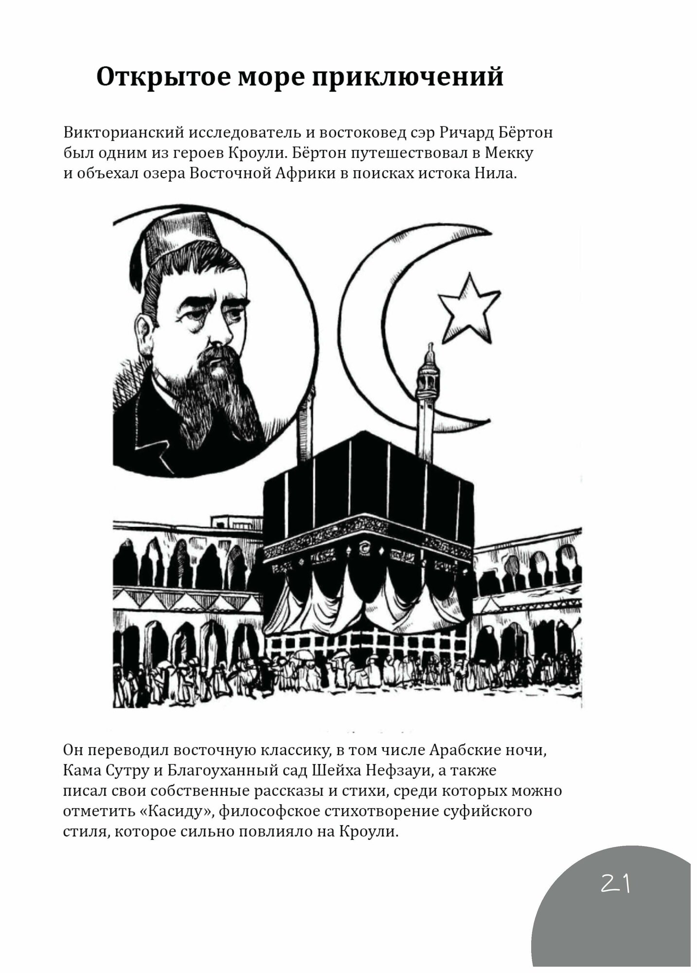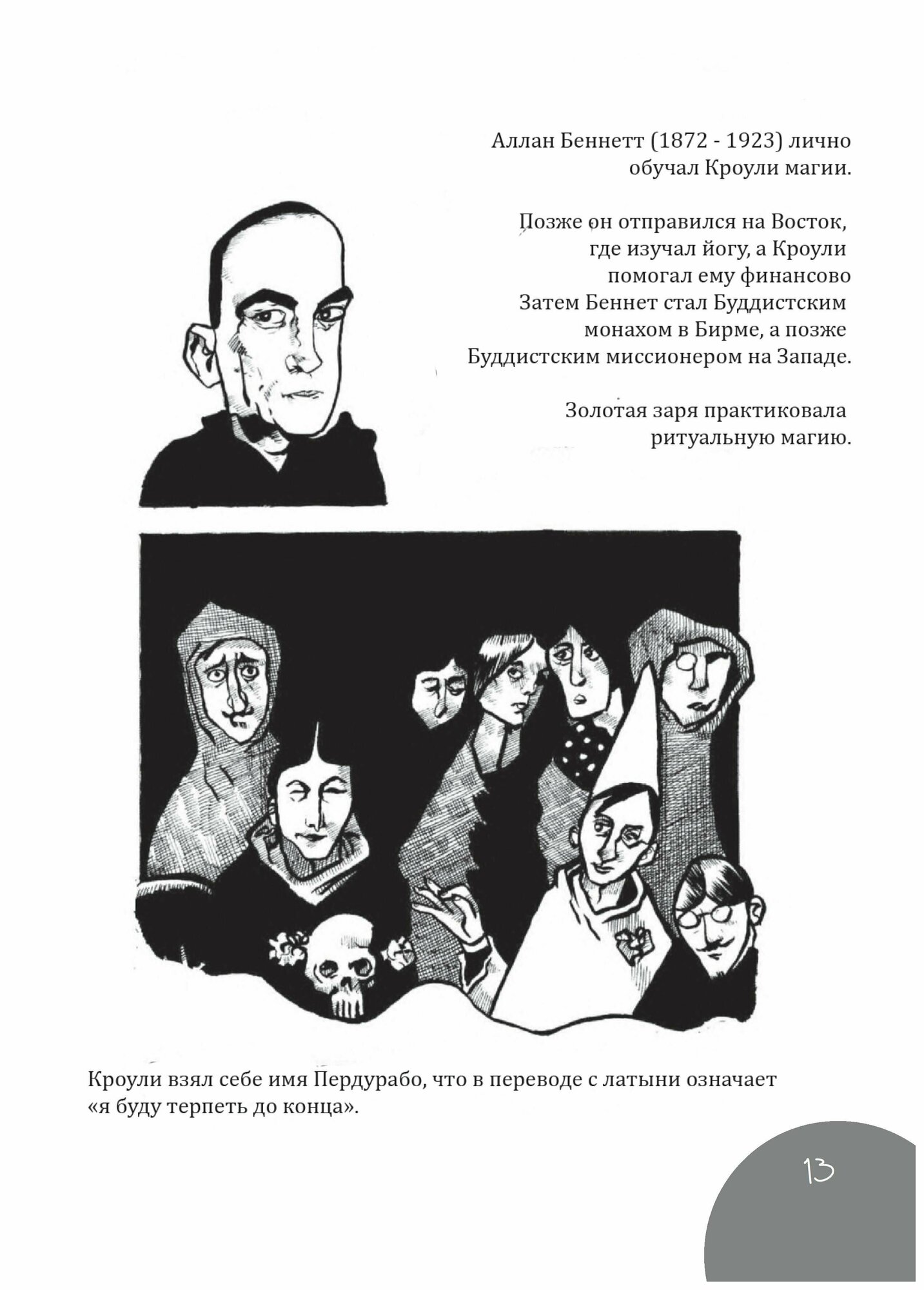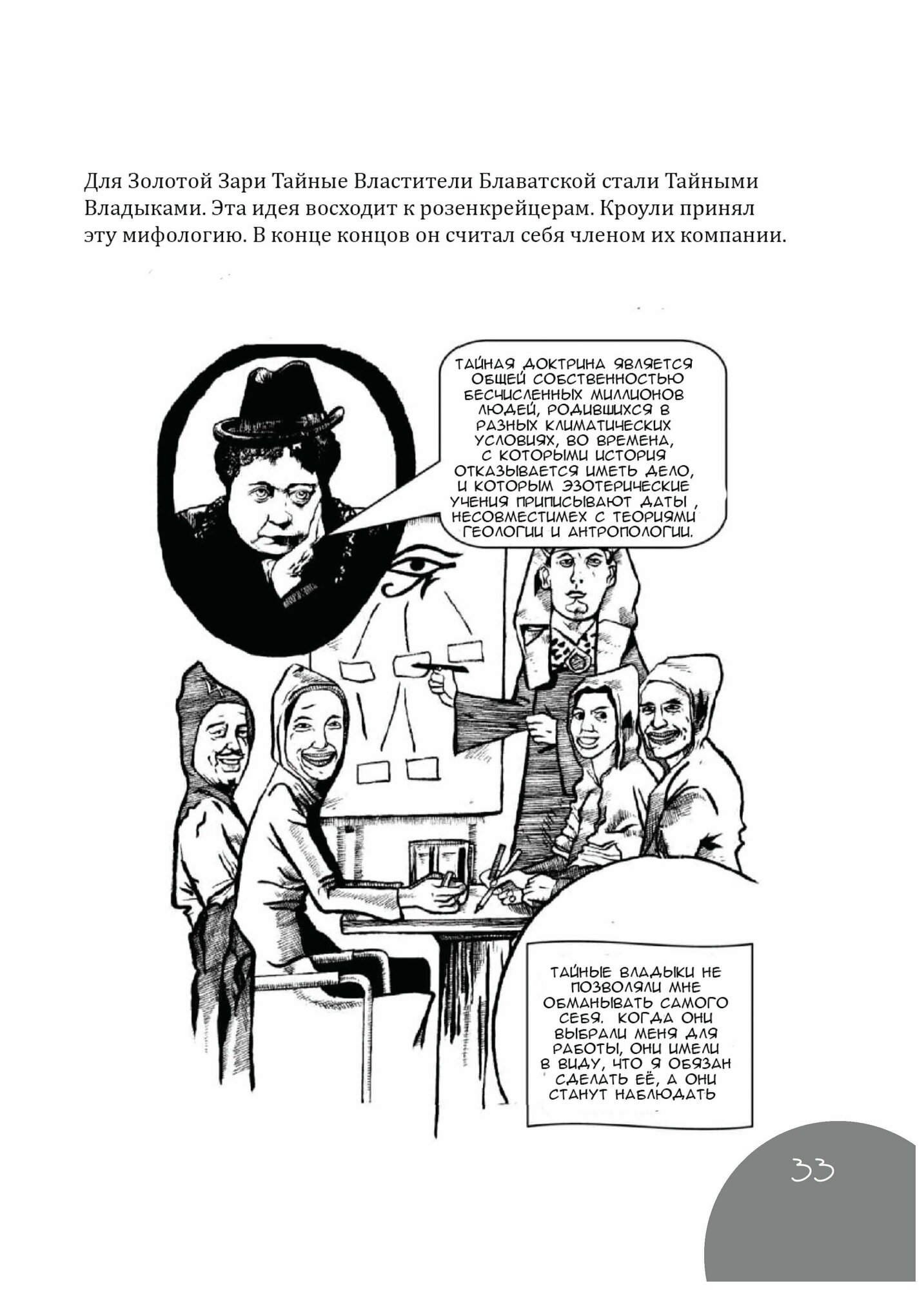 Графические руководства - одно из успешных направлений последних лет, знакомящая студентов с целым рядом мыслителей и предметов, древних и современных. Алистер Кроули - человек, который имел одно из скрытых влиянии на нашу эпоху. Полный спектр его достижений мало изучен, а то, что известно, обычно порицается. Описание жизни Кроули имеет большую развлекательную ценность, но у него была и очень серьёзная сторона, и он был тесно связан со многими художественными и интеллектуальными течениями своего времени. Он был одной из самых радикальных и интересных фигур двадцатого века. Но оговорки в отношении оккультных, а также скандальных аспектов его жизни и личности препятствовали серьезному изучению, которого он заслуживает. Писатель Джон Мур и художник Джон Хиггинс создали живое и легкое для понимания введение в эту увлекательную тему. Есть надежда, что это вызовет к нему ещё больший интерес.