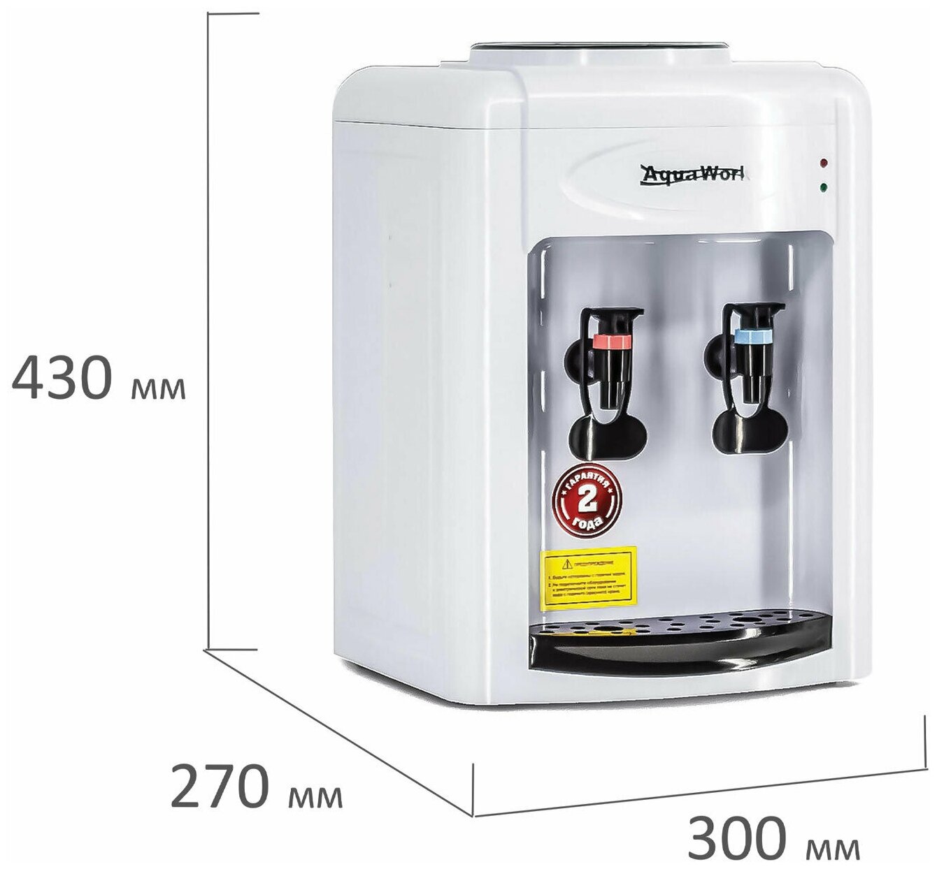 Настольный диспенсер-водораздатчик Aqua Work 0.7-TWR российского производства - модель без нагрева и без охлаждения воды. Такой функциональный аналог помпы часто устанавливают, например, в детских садиках, младших классах школ и т.д.