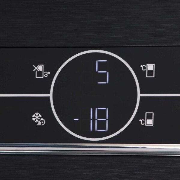 - No Frost Dual Cooling, храмированная полка для бутылок, электронный дисплей с функциями