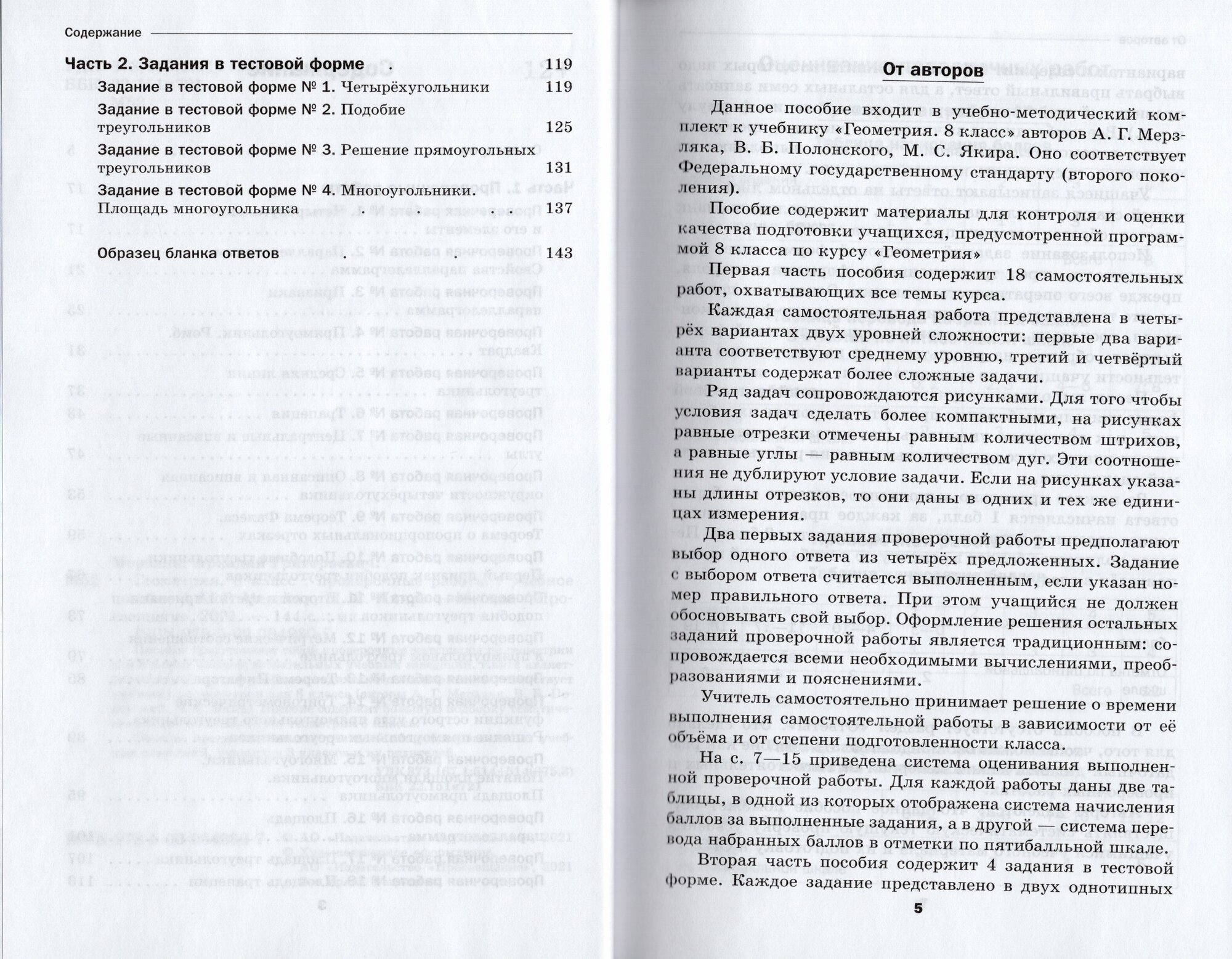 Пособие представляет собой проверочные материалы по геометрии для 8 класса общеобразовательных учебных заведений. Книга является составной частью учебно-методического комплекта и соответствует учебнику по геометрии для 8 класса (авторы А. Г. Мерзляк, В. Б. Полонский, М. С. Якир). Пособие содержит большую подборку тематических задач по всему курсу геометрии 8 класса.