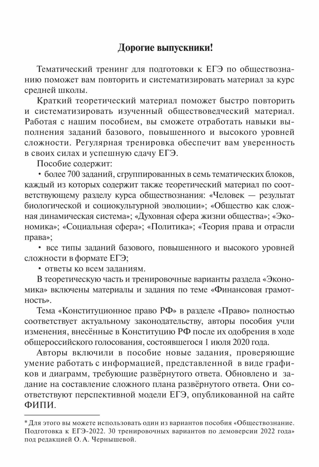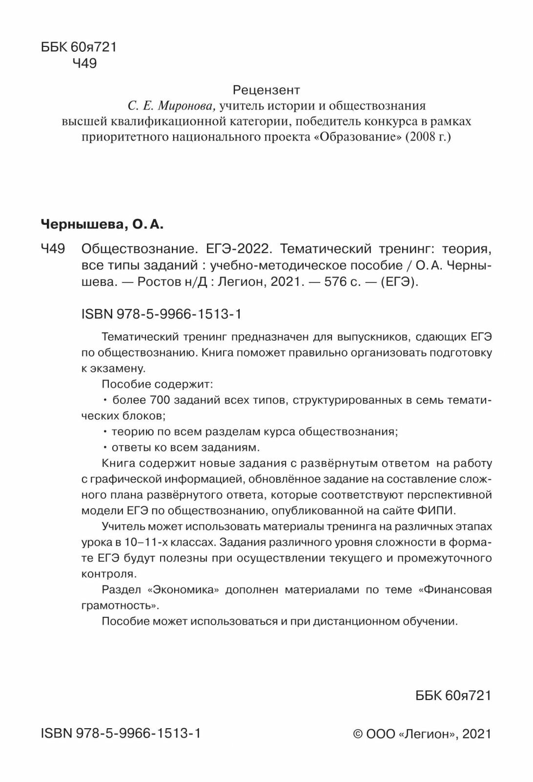 ЕГЭ-2022 Обществознание Тематический тренинг теория все типы заданий (Чернышева Ольга Алексндровна); Легион, 2021