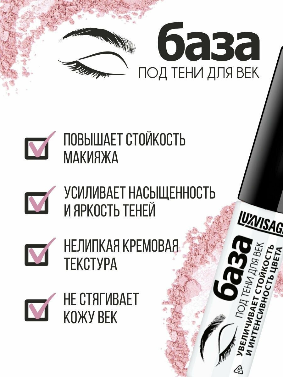 | Способ применения | Нанесите небольшое количество базы на сухую кожу век и равномерно распределите. Дождитесь высыхания и нанесите тени |