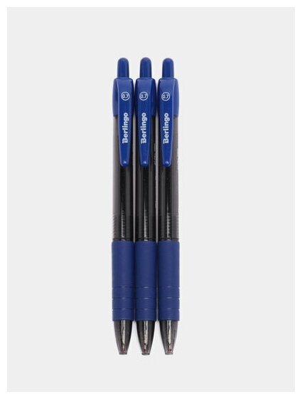 Berlingo Ручка шариковая автоматическая Classic Pro 0.7 мм 3 шт. Ручка шариковая автоматическая Berlingo Classic Pro с клипом и мягким резиновым грипом - это сдержанный канцелярский аксессуар для тех, кто ценит удобство и качество. Цвет деталей корпуса соответствует цвету чернил. Кнопочная подача стержня обеспечивает дополнительное удобство при работе с ручкой. Диаметр пишущего узла составляет 0.7 мм, благодаря чему ручка прекрасно подходит для любого стиля письма. Уникальная запатентованная технология Smart Ink - это лёгкое и приятное письмо за счёт использования чернил пониженной вязкости, специальной конструкции и особых материалов шарика пишущего узла. Такими чернилами можно писать без дополнительных усилий даже при лёгком касании бумаги. Инновационные компоненты, используемые для изготовления шарика пишущего узла (карбид вольфрама), обеспечивают долговечность и стабильность качества письма. Характеристики: Технология Smart Ink Цвет чернил: синий Толщина линии письма: 0.32 мм Длина письма: 500 м Цвет корпуса: тонированный чёрный Количество штук в упаковке: 3 Упаковка: пакет с европодвесом.