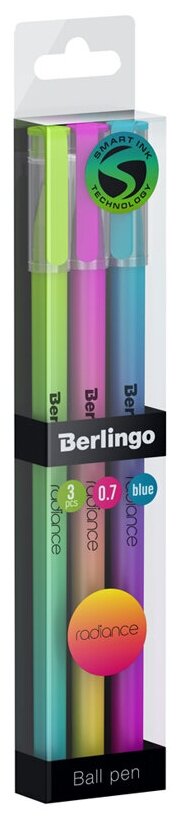 В дизайне шариковой ручки из кросс-серии Berlingo Radiance отчётливо прослеживается актуальная дизайнерская тенденция последних сезонов - неоновый градиент. Комбинация этого эффекта с бархатистым покрытием Soft-touch, создающим дополнительный комфорт при письме, делают эту ручку модным канцелярским аксессуаром. Ручка представлена с колпачком и удобным пластиковым клипом. Диаметр пишущего узла составляет 0,7 мм, благодаря чему ручка прекрасно подходит для любого стиля письма. Толщина линии письма составляет 0,5 мм, а длина линии письма - 1000 метров. Набор в пластиковом футляре имеет ручки трёх разных цветов: зелёный, розовый и голубой.