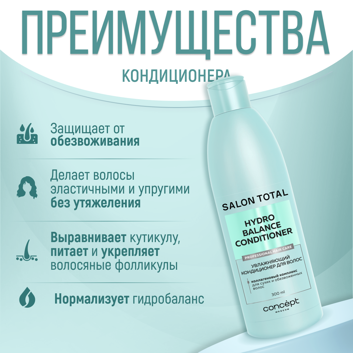 Регулярное использование продуктов линии Salon Total Hydro обеспечит увлажнение волосам и коже головы.