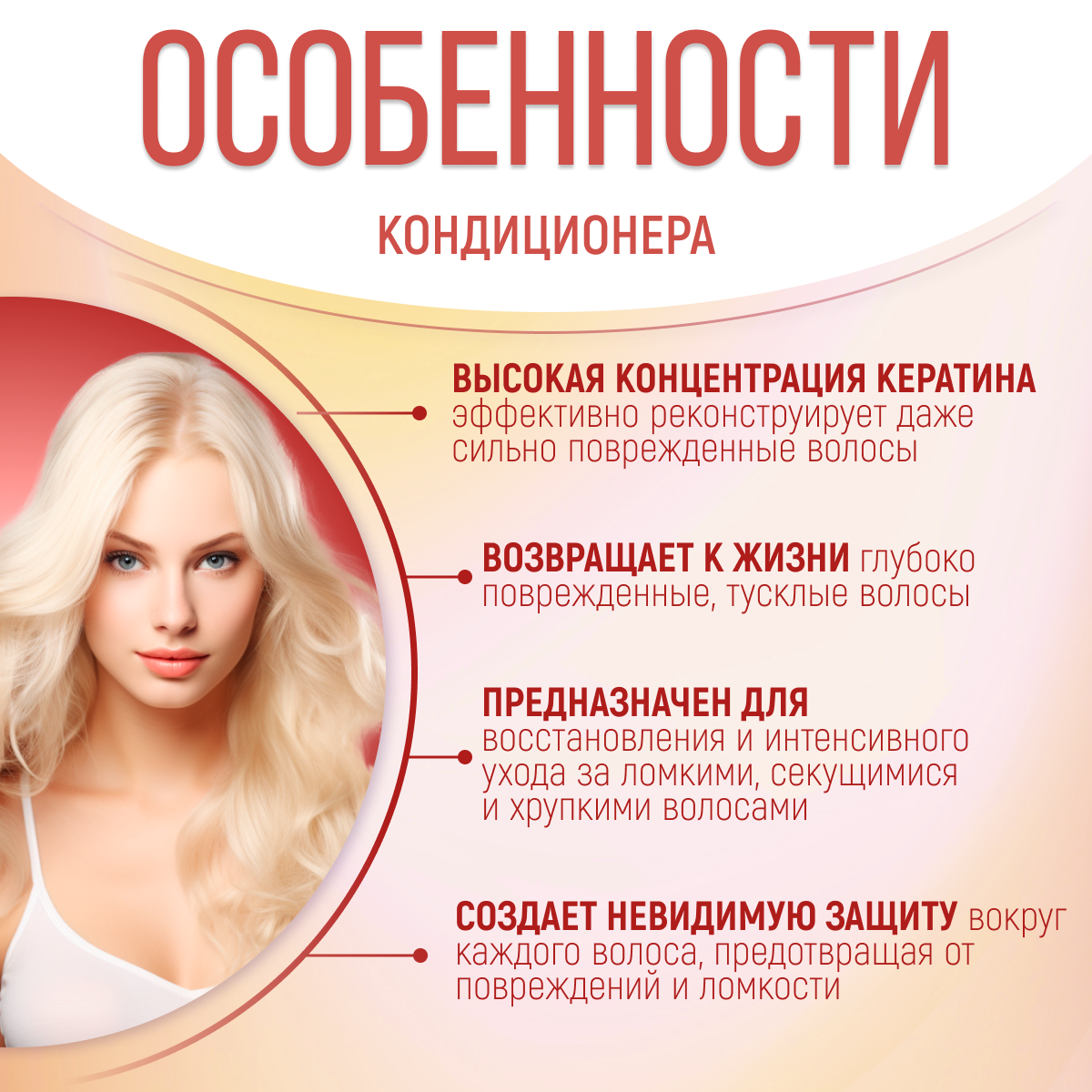 Активные компоненты: Кератиновый комплекс, масло арганы, D-пантенол, комплекс цитрусовых экстрактов.