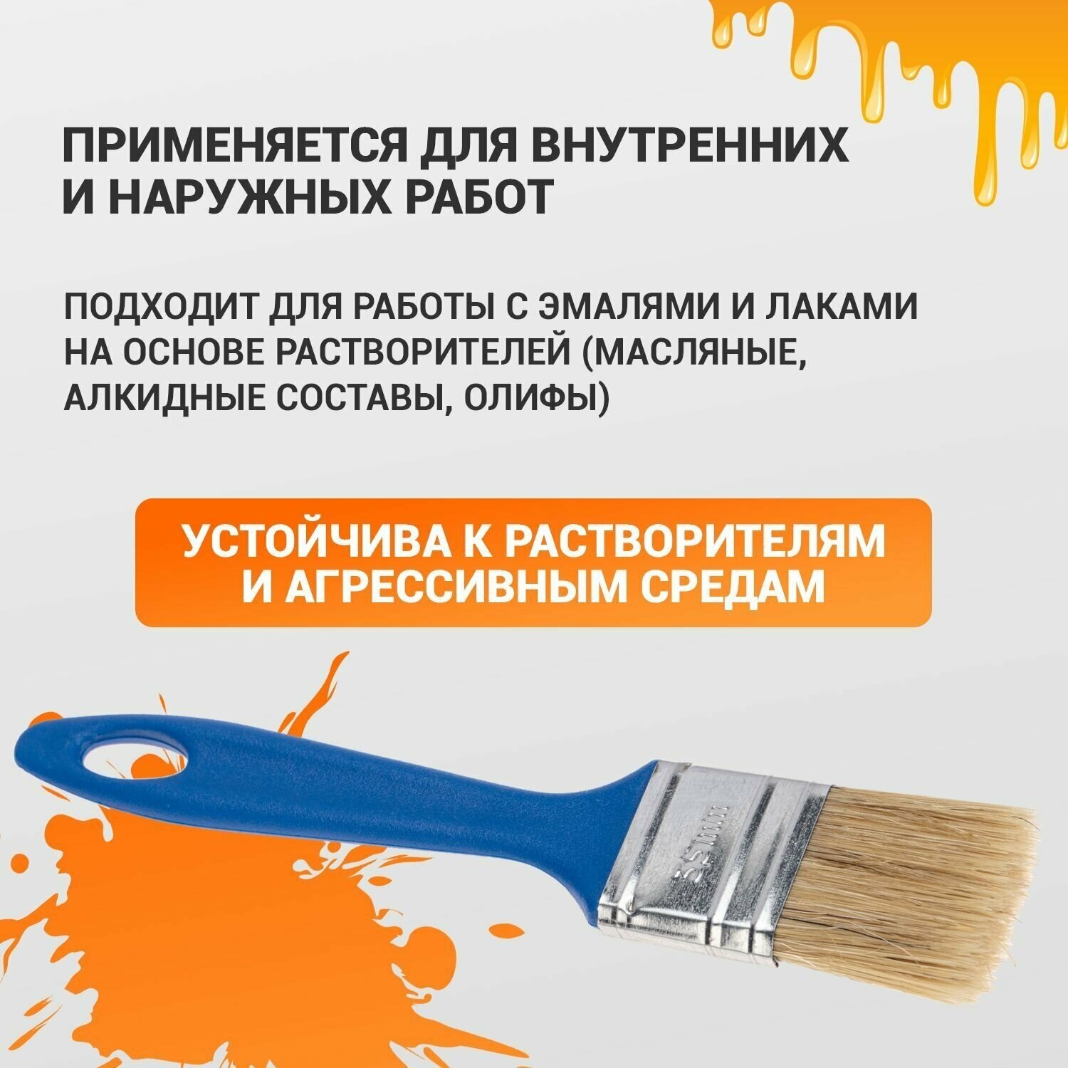 Кисть плоская подходит для покрытия различных поверхностей масляными красками, лаками. Натуральная щетина двойной выварки устойчива к агрессивным составам и надежно закреплена металлическим бандажом. Удобная пластиковая рукоятка обеспечивает комфортное удержание инструмента во время работы.