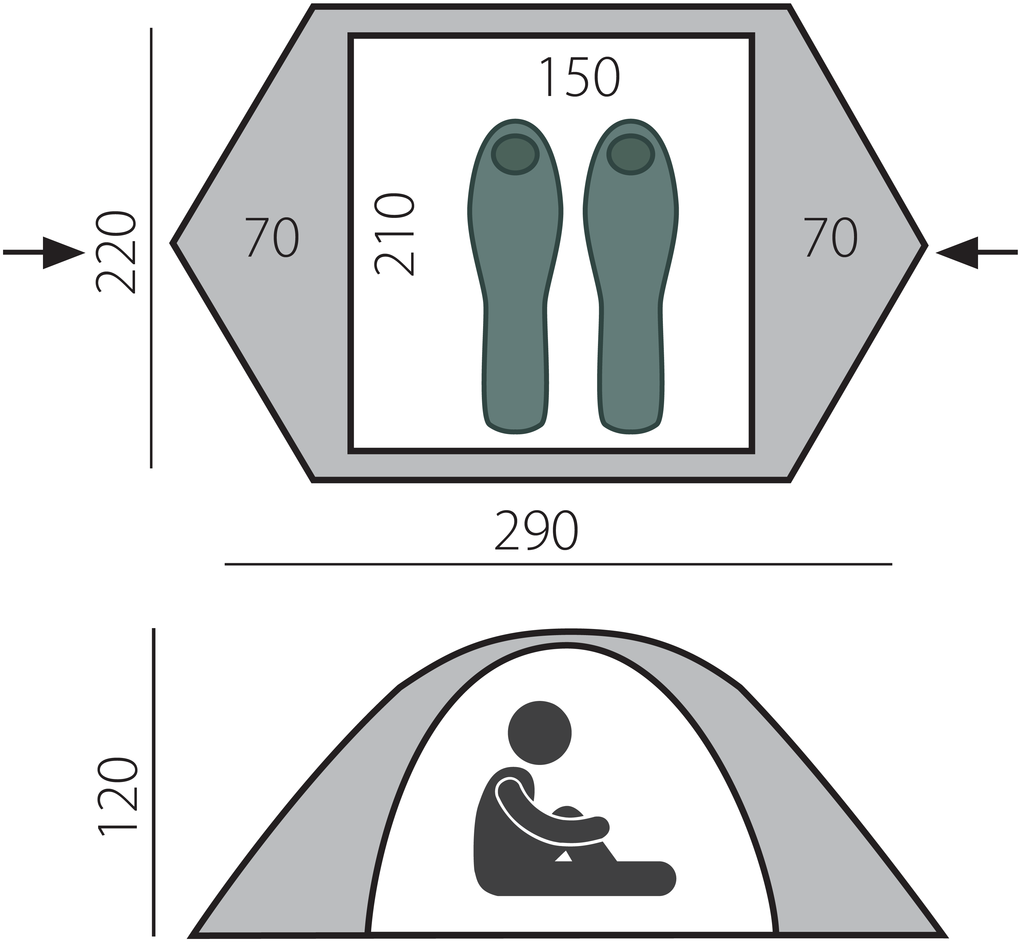 | Размер внешней палатки (тента), ДхШхВ | 290х220х120 см |