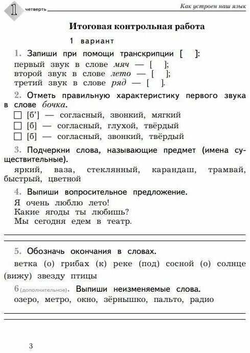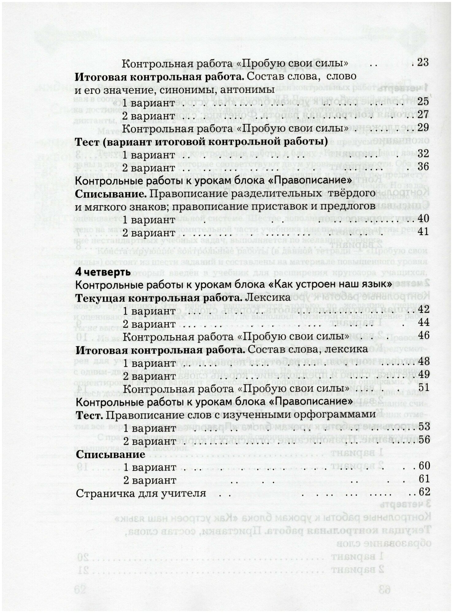 В тетради предлагаются контрольные работы, тесты, тексты для списывания, позволяющие оценить текущие и итоговые результаты обучения русскому языку во 2 классе.
