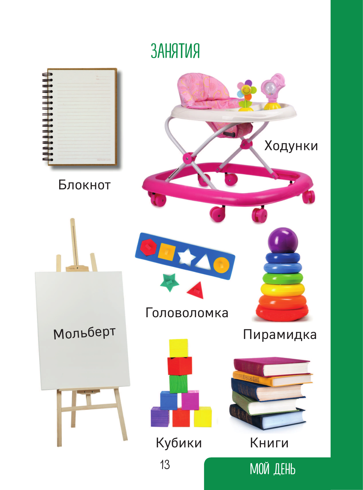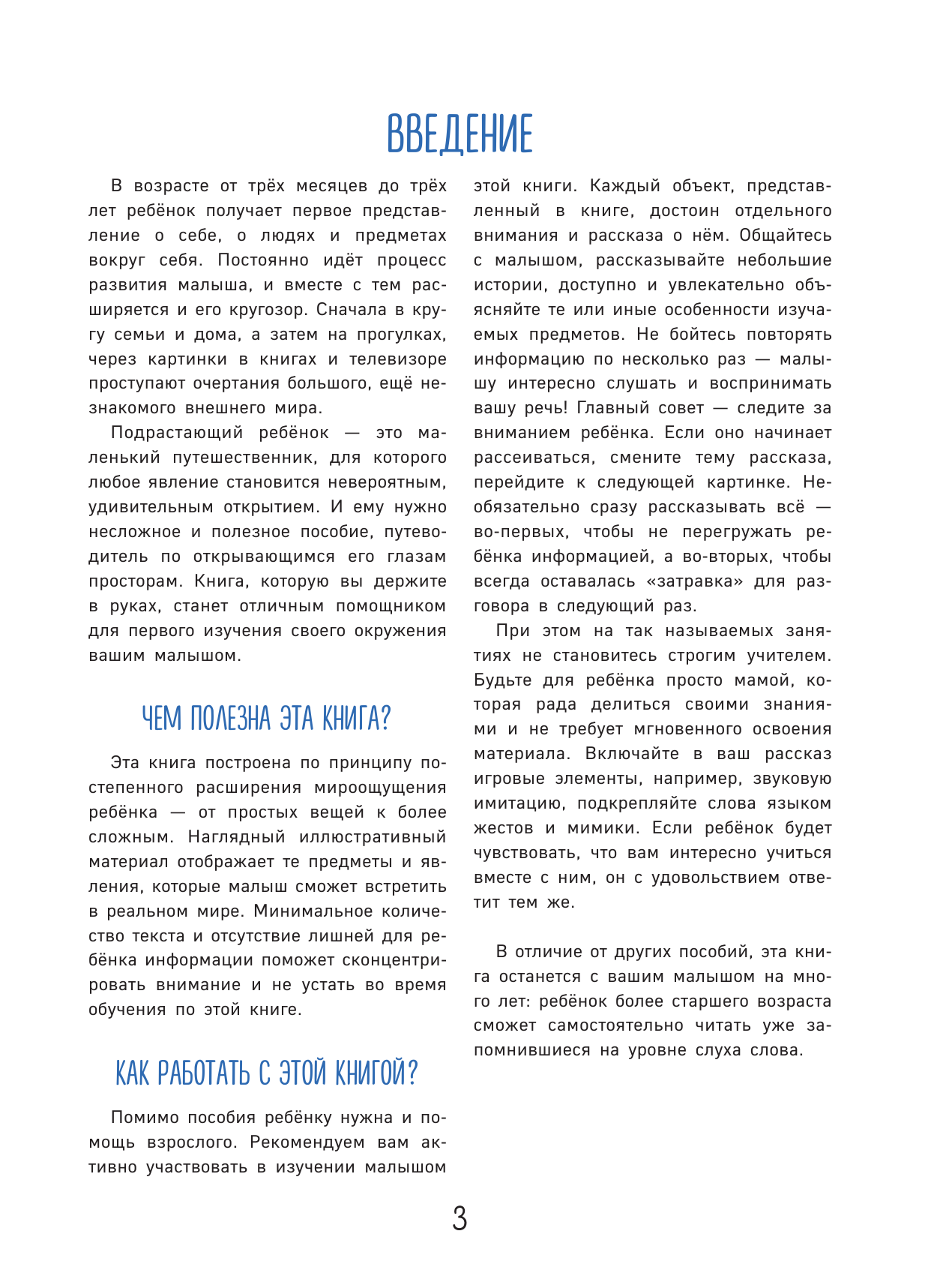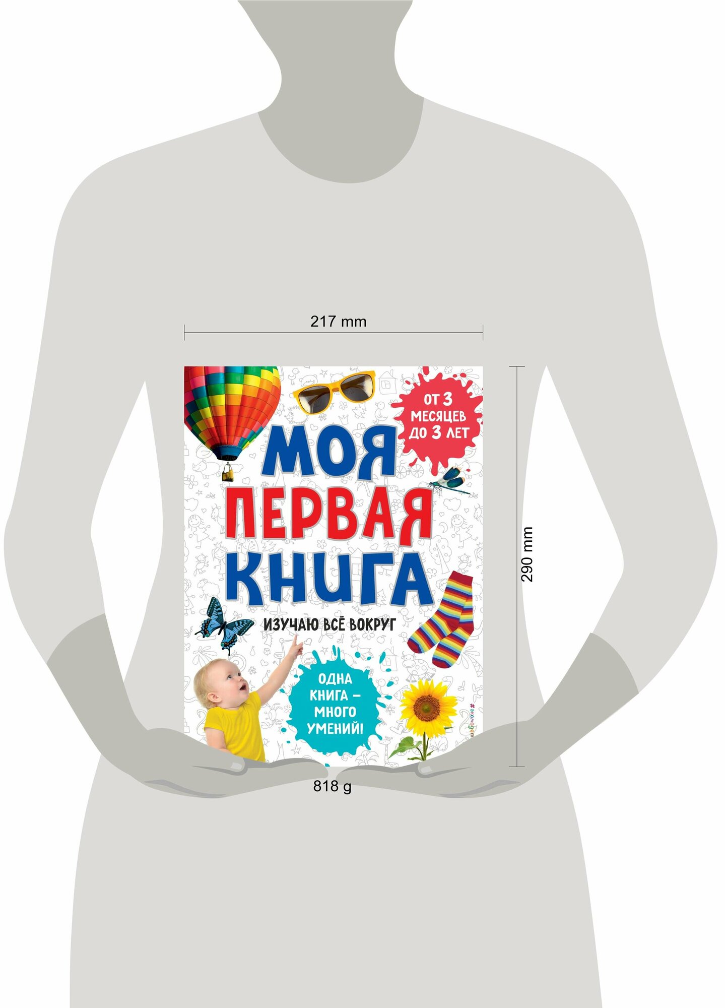 Эта книга – первый путеводитель малыша по окружающему миру. Она поможет родителям развить у малыша ассоциативное мышление, внимательность и умение воспринимать информацию с самого раннего возраста. Большое количество познавательного материала разделено по удобному принципу, который учитывает, что детский кругозор расширяется постепенно – от самого простого к сложному. Наглядные крупные картинки ребёнок сможет рассматривать уже с 3-месячного возраста, а став постарше, освоит по этой книге первые навыки самостоятельного чтения.