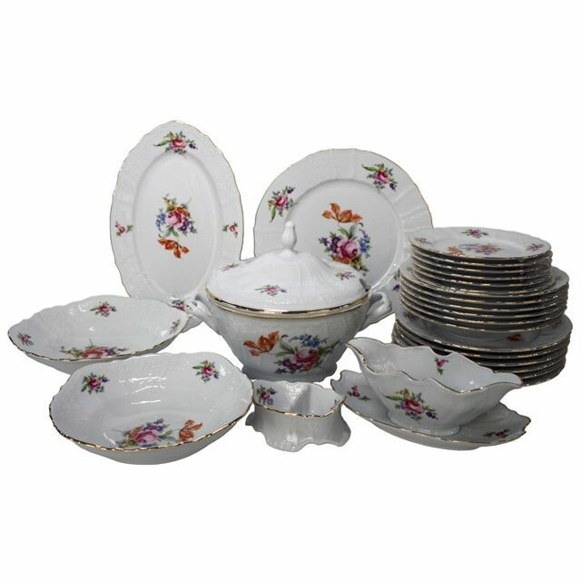 Столовый сервиз 6/25; "Bernadotte" декор "Мейсенский букет" Hoff
