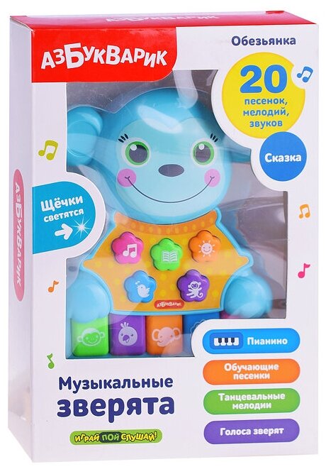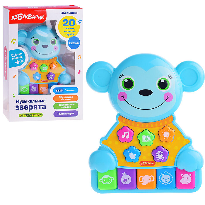 | Наименование модели | Азбукварик Музыкальные зверята 2 в 1 Плеер-обезьянка + пианино |