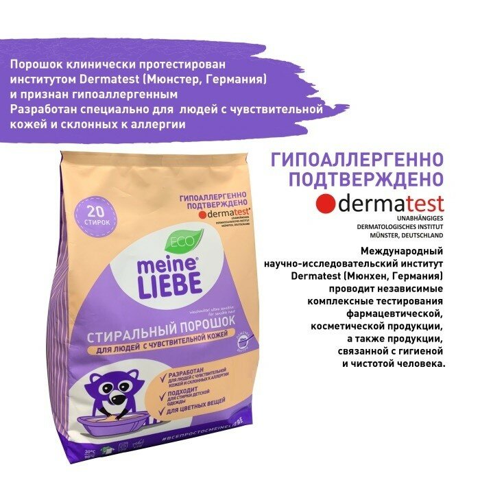 Гипоаллергенный стиральный порошок Meine Liebe для людей с чувствительной кожей 1кг (ML31207)
