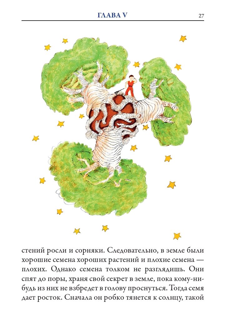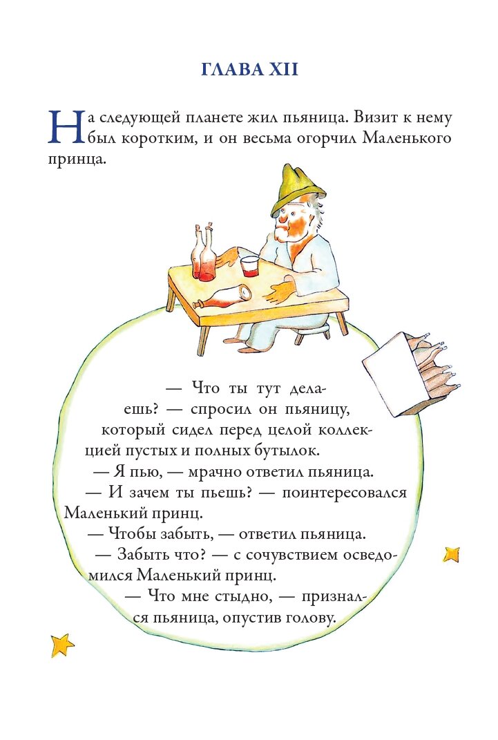 Вроде бы детское произведение, но в детстве я его не оценила. Когда искала интересные книги для своей 10-летней дочери, наткнулась на Маленького принца, решила почитать отзывы, что вообще пишут про это произведение. Какого же было мое удивление, что большинство читателей прониклось смыслом этой книги только перечитав его во взрослой жизни. Перечитала книгу в 40 лет. Еще раз удивилась, т.к. книга ОЧЕНЬ понравилась. Но для 10 лет все-таки рано. Дочь прочитала, но многое не поняла из скрытого смысла. Вывод: читать Маленького принца надо в 15-20 лет, когда УЖЕ человек может осмыслить весь подтекст, и когда ЕЩЕ вся жизнь впереди, чтобы использовать это в жизни.